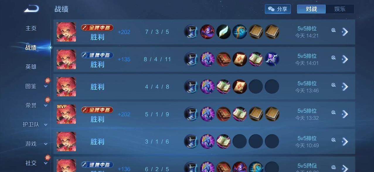 只会安琪拉,从白银,黄金到铂金,一波9连胜。 9战全胜,3场金牌中路,4场银牌中