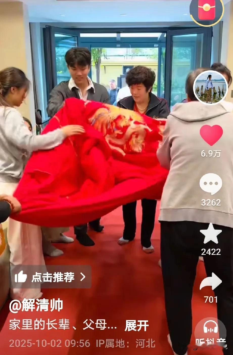 解清帅谢婚拉的真长啊,从去年表白, 今年中旬求婚, 9月10号和王正正领结婚证, 前几天试婚纱, 这次又是做红被子,又是请亲戚来出谋划策商讨婚事, 那么接下来是不是官宣啥时候结婚啊? 因为这个视频里没有提及任何一句话,大家说呢?[捂脸]