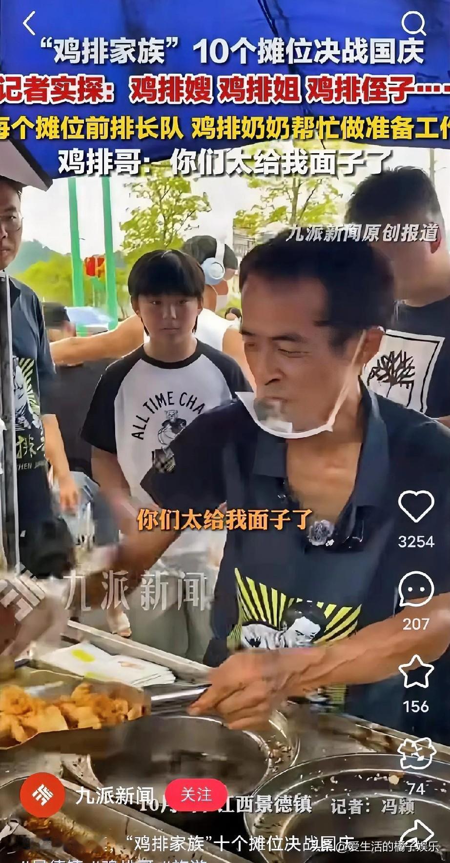 这下鸡排哥应该赚大发了吧! 因为他现在太火了,鸡排哥一下弄出10个摊位来,这次估计是把所有亲戚全都叫出来帮忙了! 从他火的这段时间,热度就不低,应该就赚不少钱了,现在刚好又是国庆,他还被认证景德镇文旅推荐官!估计去江西景德镇旅游的人也会去尝尝他做的鸡排,跟普通鸡排到底有啥区别? 好羡慕鸡排哥这泼天的富贵啊! 不过,话又说回来了,他这十个摊位在这么火的情况下,能赚多少钱呢?