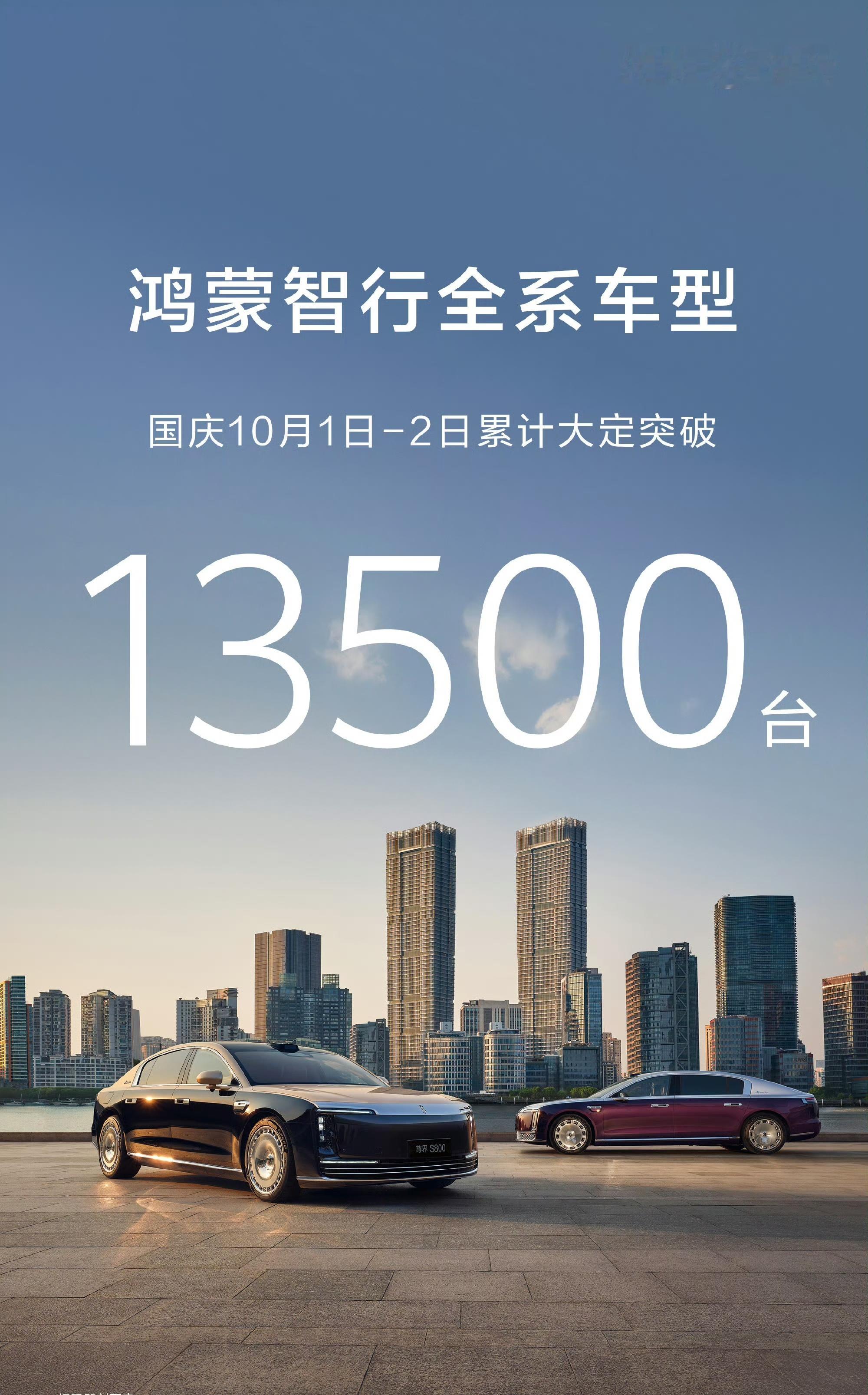鸿蒙智行国庆10月1日 - 2日两天累计大定突破13500台!