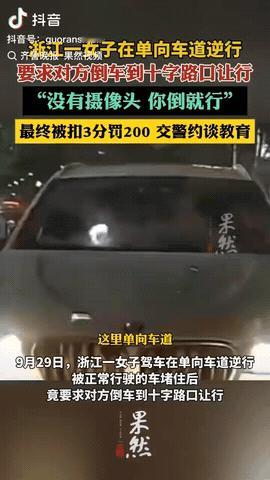 浙江温州,一女子在单向车道逆行,结果和正常行驶车辆对上了,没想到的是,她竟然要求对方倒车到十字路口让行,还说“没有摄像头,你倒就行”,对方懵了直接拒绝,并报了警,最终女子被扣3分罚200,还被交警约谈。 信息来源:齐鲁晚报 这事发生在9月30日,地点就在温州一条狭窄的单向车道上。 那女司机一上来就把远光灯打开,生怕别人看不见她的“绝技”,又猛按喇叭,直吵得人心烦。 结果没多久,她跟一辆规规矩矩该往前走的车迎头撞了个正着。 撞完也不认怂,人家正常车都想闪一闪让过去,她却不乐意:“你往后倒就行,我逆行没事,这里又没摄像头,谁拍得到!”说完还得意地补一句:“我平时就常这么干,图个方便。” 听得对面司机一脸懵,后面还有好几辆车跟着,一退根本没地方去,他干脆拒绝。 气得女司机当场扬言要把车停在路中间不走,硬生生把整条单向道堵成长龙,前后车辆全都动弹不得。 路上那叫一个危险,稍不留神就出事故。 对面司机也没跟她瞎吵,只默默掏出手机,准备报警。 谁知这招一出,那女的脸都白了,丢下嚣张劲儿,立马钻回车里,迅速倒退溜走,消失在路口,看得路人都拍手叫好。 可她以为跑得掉?后面还是被温州交警找上门,给她按交规来了一套:扣3分、罚款200元。 虽说不算狠,但也让她知道,规则不是靠有没有监控说话的。 这件事给大家提个醒:开车别耍小聪明,不要把交通规则当摆设,影响大家出行,以及给大家添安全隐患,这样子不仅给自己惹麻烦,也害人害己,最终得不偿失。 幸好她这次没有碰上更较真的司机,不然遇到脾气暴躁的司机,后果可就不止罚个200块那么简单了。 所以,我们出门在外开车,记住安全第一,不要自私自利,否则后果不堪设想。