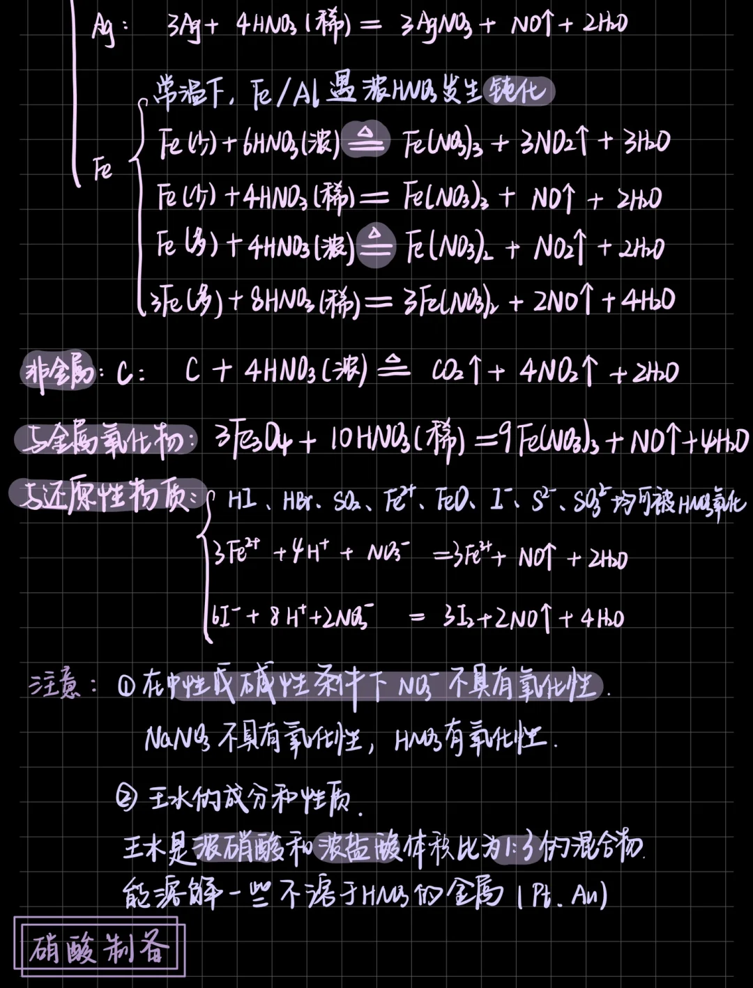 1️⃣硝酸是一种强氧化性酸,与之前学的稀硫酸稀盐酸性质有很大区别,发生氧化还原时会生成NO、NO2,大家注意⚠️区分 2️⃣酸雨形成分为硫酸型和硝酸型,重点是形成过程和防治措施 🤯很多同学都快开学了吧?抓紧时间预习,大家下学期一切顺利‼️‼️