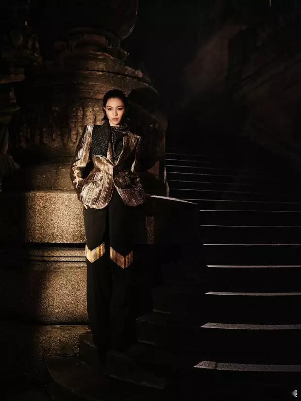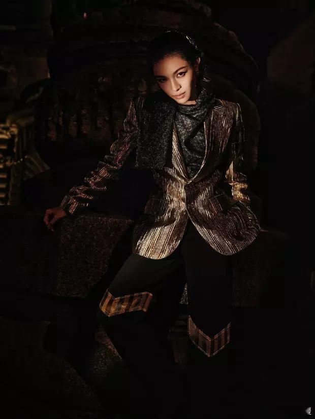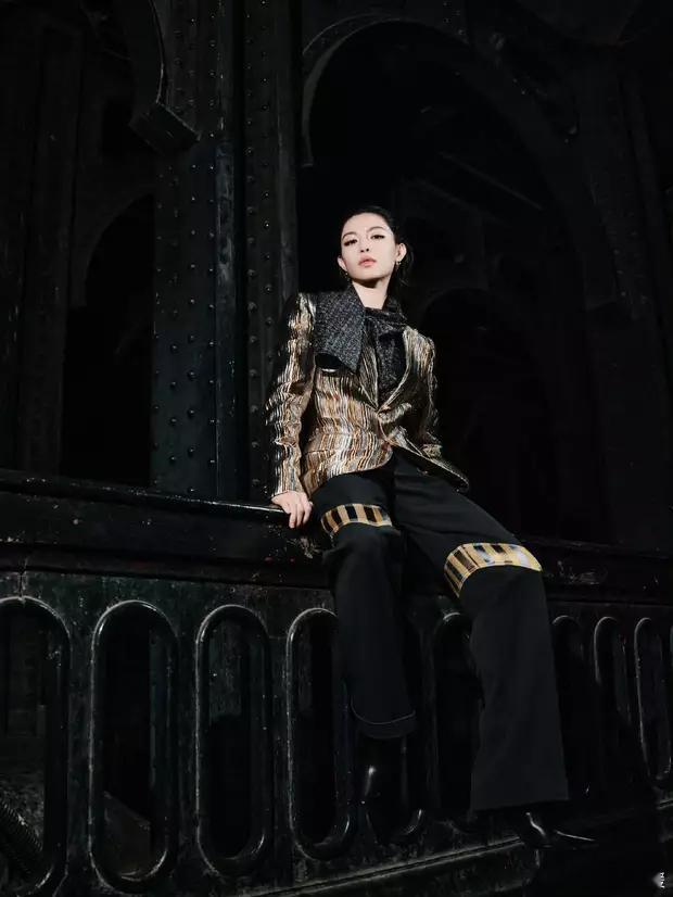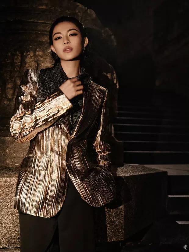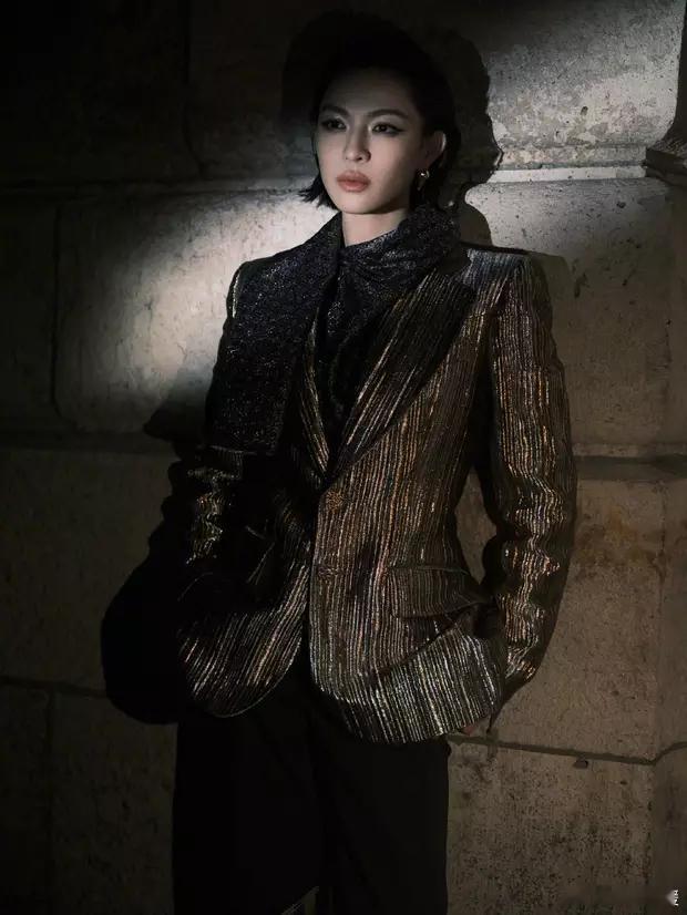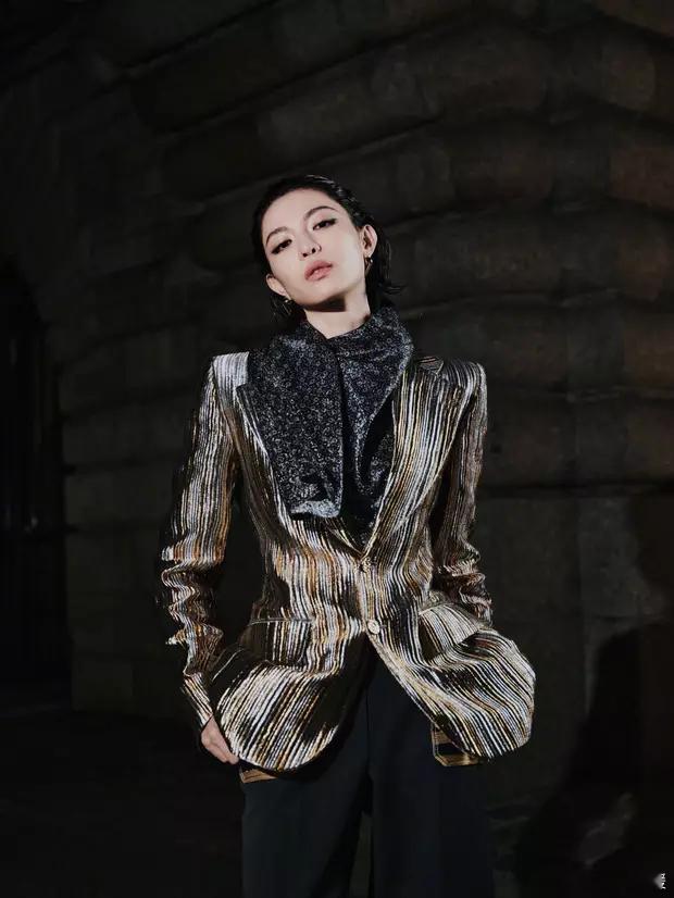 分享娱乐[超话]分享娱乐 钟楚曦鎏金西服配湿发背头,复古摩登的风格,又帅又美。