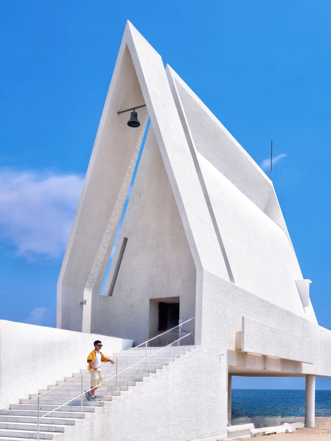 建在海边的礼堂,日出、日落蓝调时刻怎么拍都很美