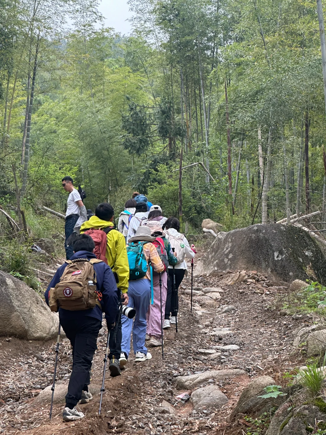 🔸徒步路线成熟轨迹明显,分叉路看两步路轨迹,一路有红丝带,需要注意的是下山最后1.2km会穿越竹林,穿长袖长裤戴帽子防止刮伤