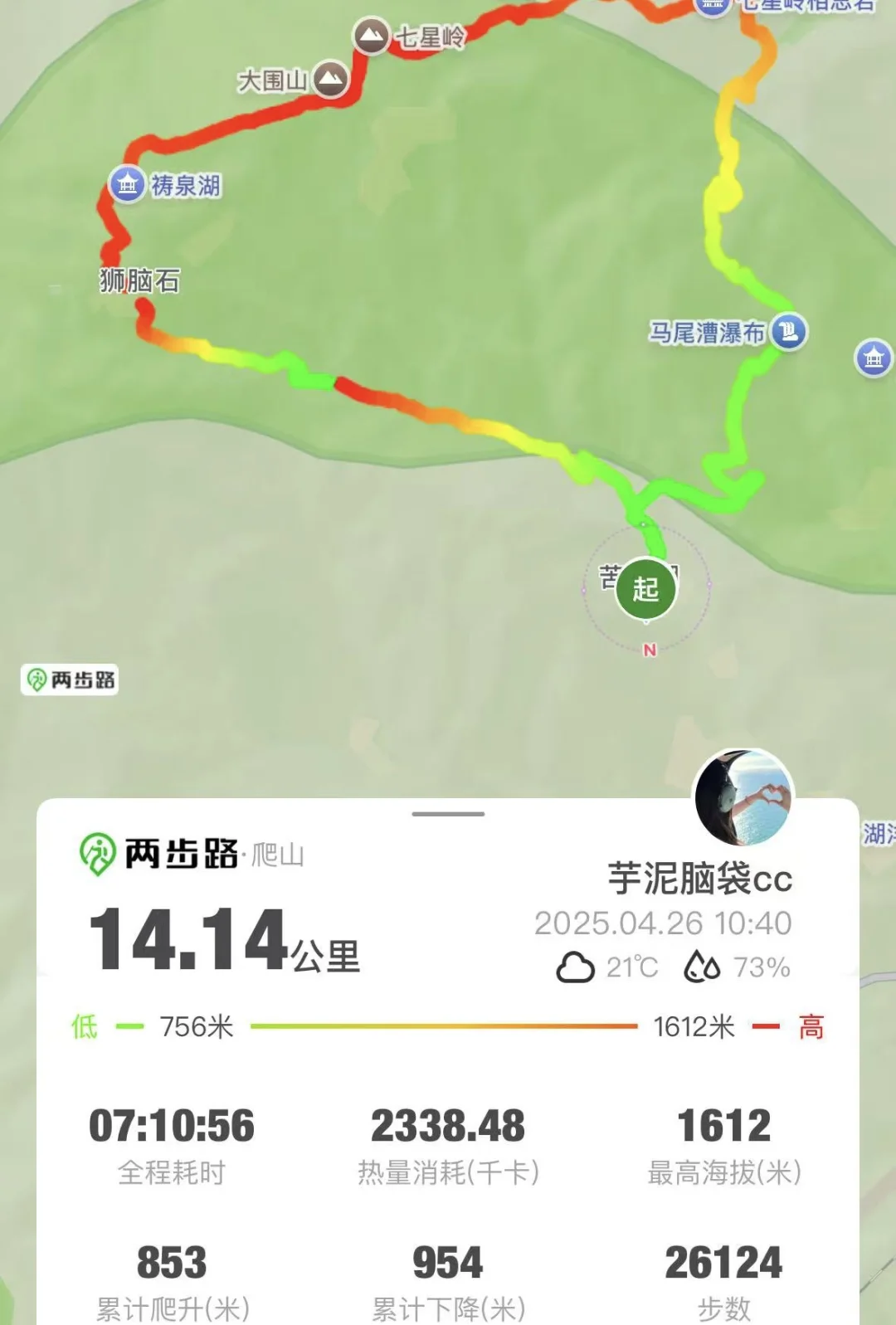 🟩徒步轨迹:可在“两步路”下载力大叔的“大围山七星岭环线”路线导航即可,标注点清晰!