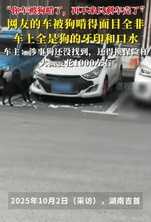 近日,湖南吉首,女子在家睡觉,突然接到好心大哥的电话说:“你的车被狗啃了,再不
