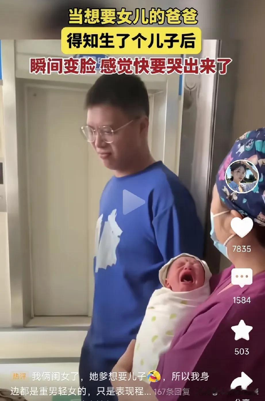 看看现在的爸爸多不想要儿子,当想要女儿的男子听护士说生的孩子是儿子的时候,都要快
