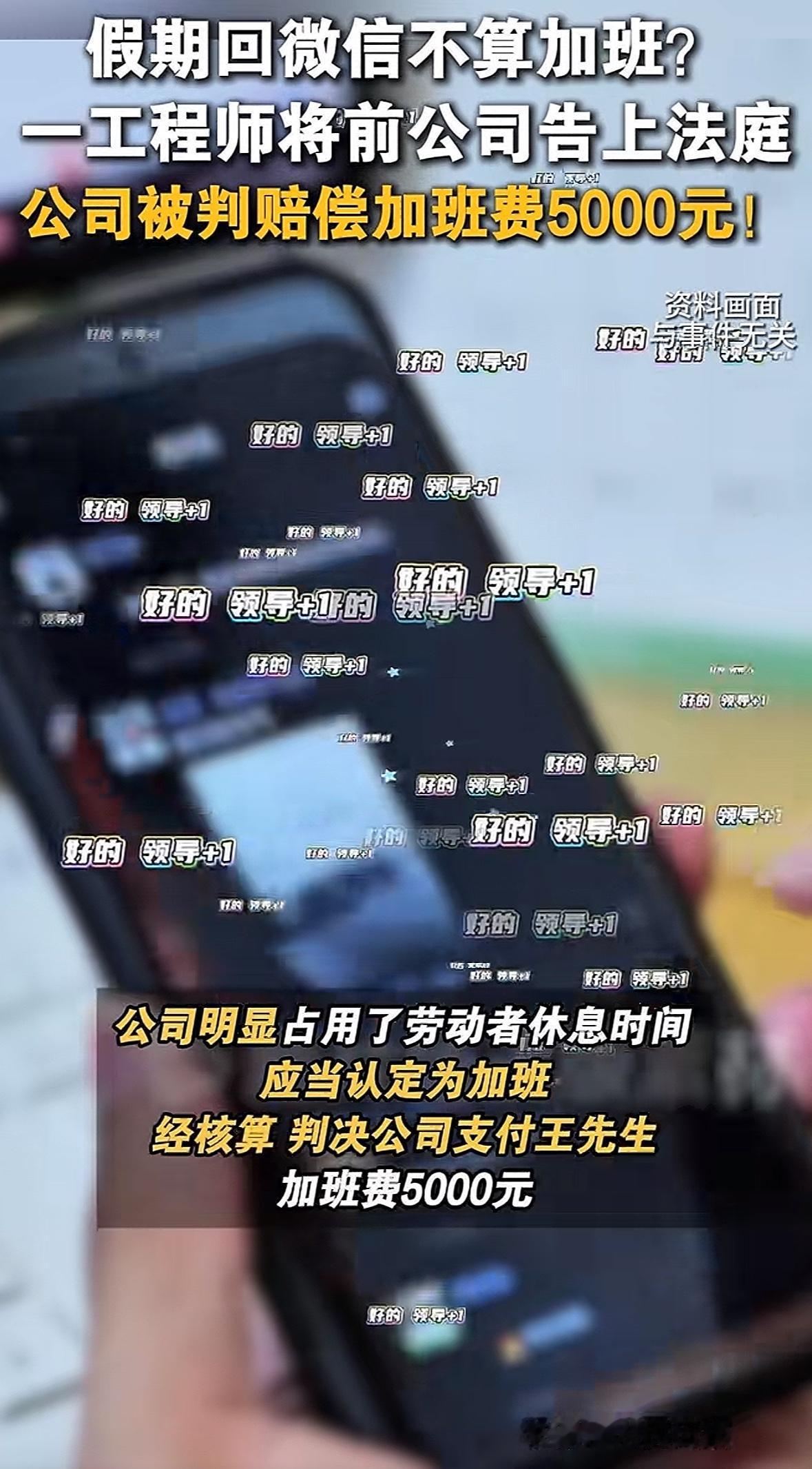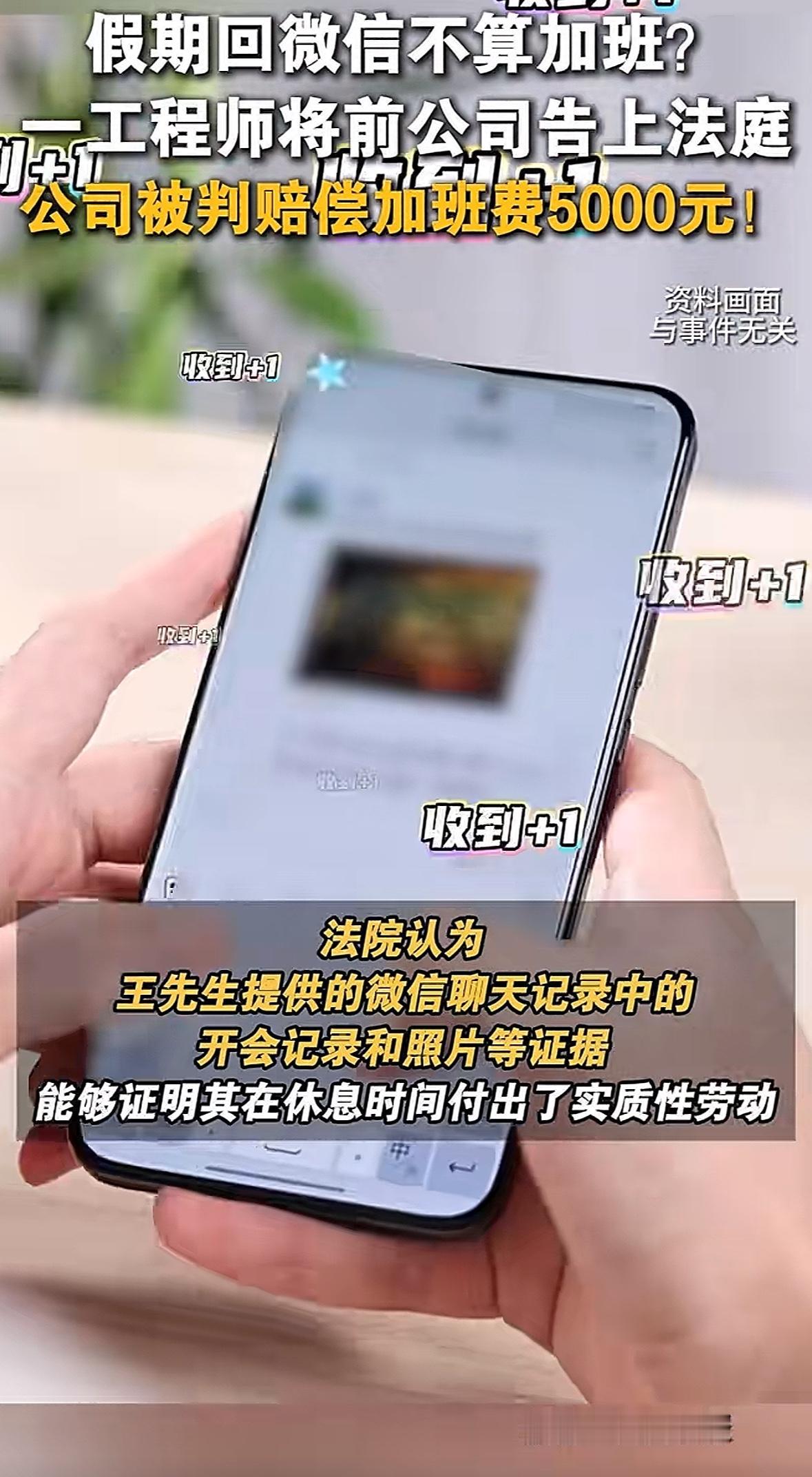 湖北武汉,男子被公司要求提交离职申请后,男子把原公司告上法庭,要求公司支付长达2年多的微信加班工资。公司表示男子是主动离职,否认男子有加班事实。男子提交微信聊天记录和照片,证实在休息时间回微信处理工作存在加班事实,法院这样判决。 王先生怎么都没有想到,他辛辛苦苦工作了2年的公司,竟然逼着他辞职。好在他有保留记录的习惯,他要为自己2年的辛苦讨要一个说法! 王先生自从2020年5月入职某建设公司担任主办工程师后,可以说是一天完整的休息都没有过。 因为工作性质的缘故,王先生的手机需要24小时开机待命,只要工作群里有需要,他就得马上回复群内的工作消息,无论是白天还是晚上,更别提是不是工作日了。 就是因为这样高强度的工作,王先生的身体和精力实在是难以跟得上,所以偶尔会有些懈怠。 但是王先生的懈怠并没有影响工作,但可能在公司的眼里却成了让王先生离职的借口。 就是因为王先生没能够按照公司的要求完成工作,所以公司就在2022年10月向王先生做了口头通知,要求提交离职申请。 王先生其实早已经不想在这个公司呆下去了,公司既然提出来了,那么王先生照做就是了,没必要过多纠缠,马上就向公司提交了离职申请。 离职后王先生收到了结算的工资清单,王先生质问为什么没有休息时回复微信的加班费用。 公司并不认为在休息的时候回复微信的消息算是加班,理所应当的回复王先生就是没有的。 王先生越想越憋气,工作2年多以来,没日没夜的忙着工作,没捞到一点好处不说,反而休息日在微信群里的回复还没有算作加班,一气之下就将原公司告上法庭。 王先生不能就这样白白离职,他要为自己这2年多的辛劳讨要个说法,他要求原公司支付相应的加班费用。 王先生表示,他在在职期间,存在大量的延时加班等情况,在节假日和休息日也是待命的状态,只要王先生不回复微信群里的工作消息,领导就会催促。 王先生从春节到国庆,一年之中的各个法定节假日都在回复工作群内的工作消息,汇报工作进度,发送现场照片等。 王先生认为,在非工作日回复微信群内的工作信息,都是属于一种加班的行为,公司都应该按照加班的费用支付给他加班的工资,但是在离职的时候却没有看到。 根据《劳动法》第44条的规定:有下列情形之一的,用人单位应当按照下列标准支付高于劳动者正常工作时间工资的工资报酬: (一)安排劳动者延长工作时间的,支付不低于工资的百分之一百五十的工资报酬; (二)休息日安排劳动者工作又不能安排补休的,支付不低于工资的百分之二百的工资报酬; (三)法定休假日安排劳动者工作的,支付不低于工资的百分之三百的工资报酬。 所以王先生要求,原公司需要支付给他2年工资时间内的加班费用。 原公司在法庭上辩称,王先生是主动离职的,而且王先生在在职的时候也从来没有提交过任何的加班申请,所以公司不认为王先生存在加班的事实。 至于王先生所说的回复微信消息应视为加班,公司表示没有依据,不能算作是加班。 既然没有加班的事实,那么就不存在王先生所述的加班时间和需要支付的加班金额。 法院经过审理后认为: 根据《劳动法》第36条的规定:国家实行劳动者每日工作时间不超过八小时、平均每周工作时间不超过四十四小时的工时制度。 因王先生的工作性质原因,无法按照正常的工作要求进行上下班打卡,也就没办法按照常规的工作要求计算其工作的时间。 但是王先生提交的的微信聊天记录,以及施工现场拍摄的照片时间来看,很明显王先生经常在半夜甚至是法定节假日都在回复工作群里的消息。 在非正常的工作时间回复工作群内的消息,也理应视为加班,应计算加班的费用。 根据《劳动法》第41条的规定:用人单位由于生产经营需要,经与工会和劳动者协商后可以延长工作时间,一般每日不得超过一小时;因特殊原因需要延长工作时间的,在保障劳动者身体健康的条件下延长工作时间每日不得超过三小时,但是每月不得超过三十六小时。 因王先生的工作大部分都是通过微信进行沟通交流完成,不能将所有在微信上回复的消息时长都算作是加班时间,有失公平。 最终法院对王先生的工资情况、职务要求、加班频率的时长和内容进行了综合考量后,酌定原公司应向王先生支付加班费用5000元。 工作形式和模式的多样化,不能成为公司否认员工存在加班事实的理由。 员工也要多为自己的工作留存下来证据,不能让自己付出的辛劳都成为泡影,更不能让自己付出的努力得不到回报!
