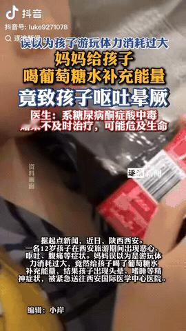 陕西西安,一男孩去玩的时候突然肚子痛和头晕,妈妈以为是孩子太累,于是妈妈给孩子喝葡萄糖水补充能量,没想到的不仅没好,反而越喝越难受导致晕厥,去医院看医生被确诊为糖尿病,这病如果不及时救治,真能要命。 信息来源:逐浪新闻 这事发生在10月1日假期,一家三口兴冲冲地去逛古城墙,走了没多远,小伙子就喊肚子难受,开始干呕,还说头好晕。 妈妈心想:“肯定是累坏了,补点能量就行。” 结果一口糖水下去,不但没好,反而越喝越难受,直接迷糊过去了,吓得家人连忙打车冲到西安国际医学中心医院。 医生一查血糖、验尿酮体,当场给盖了个大帽子:糖尿病酮症酸中毒。 原来他体内胰岛素严重不足,血糖飙升却用不到,多余的糖分没地儿用,身体只能拆脂肪“求生”,结果酮体蹿得满血都是,把血酸性都拧坏了。 如果不及时救治,真能要命。 医生再三叮嘱:这病早期跟普通胃肠炎、疲劳太像,根本分不清。 通过这事给大家提个醒:如果家长遇到孩子莫名呕吐、腹痛、头晕,不要马上喝糖水,记得第一时间还是得跑医院,做个血糖尿检。 还有旅途中更要注意干净卫生,别贪图路边小吃,万一是别的原因引发脱水或感染,所以,身体健康第一,希望每个人都要有健康常识,好好爱惜自己的身体。