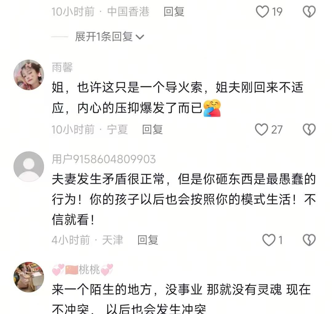 刚刚查了一下老公山姆 不查不知道,一查真佩服,为了安娴,能放弃了这么多,绝对是个汉子 我刷到安娴视频的时候都懵了!在美国住了十几年、儿女双全,老公山姆还总给她送节日礼物,之前看她分享的日常,还觉得这跨国家庭嘎嘎幸福呢。结果刚回河南俩月,就因为一句“衣服放好”闹到安娴住妹妹家,山姆带孩子出门,俩人好几天不说话——这剧情反转得,比我追的剧还刺激,你们说这咋回事儿啊? 说实话,安娴当初决定回河南定居,我还挺理解的,想陪爸妈嘛,谁不想守着老家亲人?但后来看她先带孩子回去,让山姆留在美国处理工作、卖房这些破事儿,我又有点纳闷:搬家又不是打包行李,那么多麻烦事,咋没见她提过跟山姆商量的细节呢?本来以为是俩人一起拍板的决定,后来才发现,好像多半是安娴自己拿的主意,这就有点微妙了吧? 安娴后来买房说“回美国就给哥哥住”,我看到这儿的时候,心里咯噔一下——这房子到底是他俩在河南的家,还是安娴提前给娘家留的备胎啊?山姆放弃美国的事业、亲人,千里迢迢来河南,结果连房子的使用安排,好像都没他啥事儿,换谁能不觉得自己像个“过客”?我要是山姆,可能也会有点郁闷,毕竟家是俩人的,总不能一方全说了算吧? 之前我妈跟我说,人家常说“过日子得互相搭台”,不是一方往前冲,另一方只能跟着走。安娴想陪爸妈没问题,但也得想想山姆的感受啊!他在美国待了几十年,突然到河南,连语言环境都不一样,本来就需要适应,结果连家里的大事儿都没咋参与决策,这心里能舒服吗?说实话,我觉得这搬家看似是“尽孝”,其实藏着没跟山姆说透的“小算盘”,你们觉得呢? 我之前有个朋友,嫁了个德国人,就因为她让老公“把碗洗了”,老公觉得她在“命令”自己,俩人吵了三天!你看,这跟安娴山姆的事儿多像!安娴可能觉得“我都给你洗好熨烫了,放一下咋了”,纯属好心提醒;但在山姆那边,可能就觉得“凭啥你安排我做事”,毕竟在美国,他们可能更讲究互相商量,不是一方指挥另一方。 结果到了公司更离谱!团队小伙伴叫山姆干活,他不搭理;安娴叫他,他还是没反应,最后抬头就说“你得给我道歉”——我要是安娴,当时肯定崩溃了!多大点事儿啊,至于跟工作置气吗?再说了,有啥不满不能好好说,非得冷战?山姆这脾气一上来,跟个孩子似的,真的假的啊?我都想冲进屏幕问一句“弄啥嘞”,有话不能好好唠? 现在评论区全是“山姆放弃这么多,安娴该让着点”,我晕!凭啥啊?山姆放弃美国的东西是事实,但安娴在美国十几年,不也跟着山姆适应那边的生活了吗?当初她在美国享受优渥生活的时候,没人说她“牺牲”,怎么到山姆这儿,连一点小矛盾都得安娴道歉?这双标也太明显了吧! 我觉得这就是“牺牲叙事”搞的鬼,把山姆架在“伟大付出者”的位置上,逼着安娴让步——但婚姻不是买卖啊,不是谁牺牲多谁就有理!之前俩人感情好,不就是因为互相体谅吗?现在倒好,一有矛盾就拿“牺牲”说事儿,这不就是道德绑架嘛!我真是嘎嘎膈应这种说法,你们有没有觉得,这舆论有点跑偏了? 其实啊,我这瞎操心的毛病又犯了,但真的希望他俩能好,毕竟俩孩子多无辜啊!要是真想化解矛盾,听我一句劝:找个晚上,别带情绪,就像唠嗑似的坐下来聊——山姆说说为啥觉得委屈,别动不动就冷战;安娴也说说自己没别的意思,不是想指挥他。以后不管是买房还是搬家,多问问对方的想法,别自己全拍板,毕竟家是俩人的,得一起扛才行,你说是吧!#安娴姐姐一家在美国#