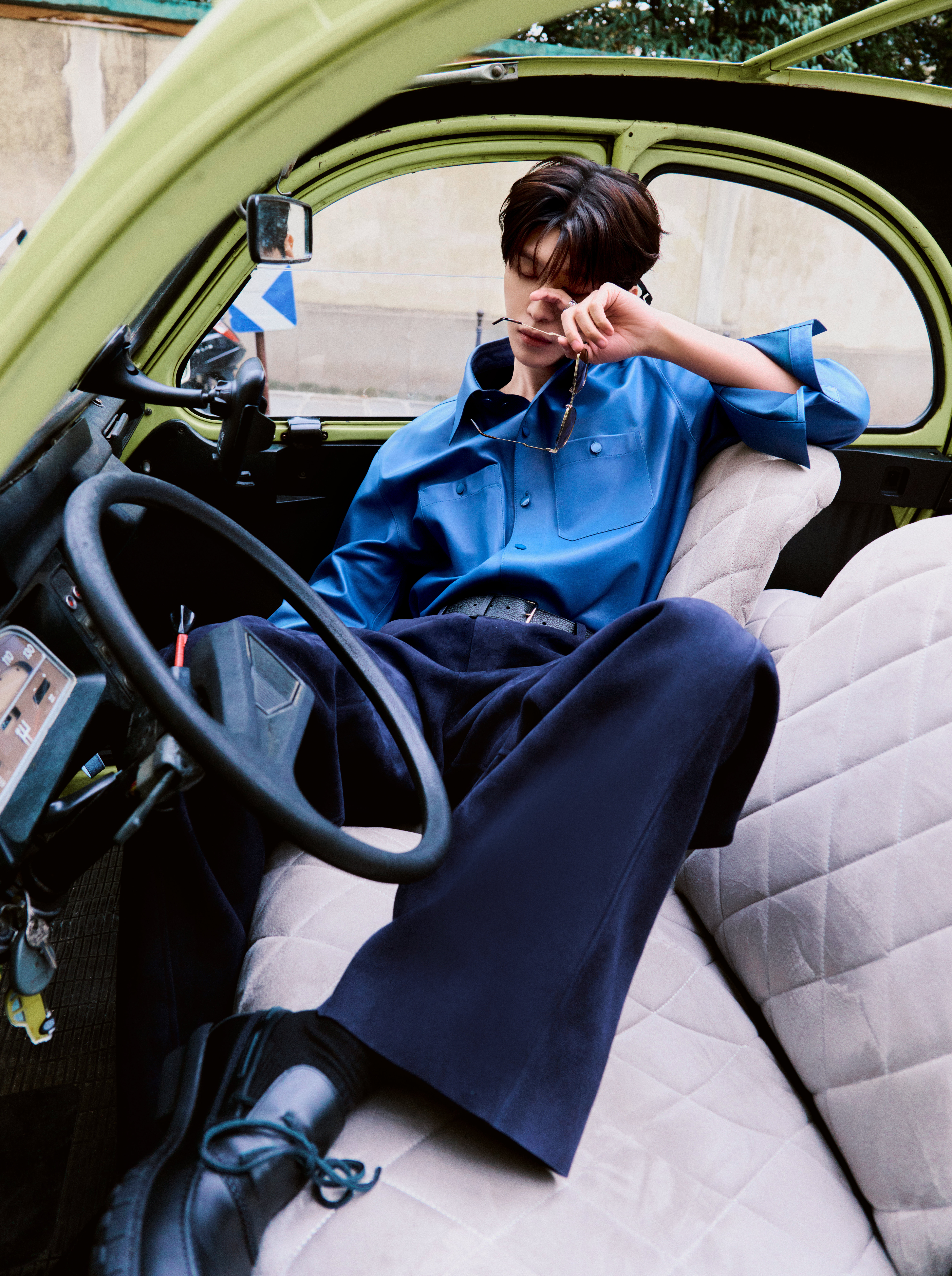 范丞丞 × GIVENCHY 2026 春夏女士成衣及配饰系列发布会造型大片发布,品牌代言人一袭品牌 2026 春季系列出镜,亮眼的蓝色皮质外套搭配利落麂皮长裤,摩登时髦,尽显贵气风范📸💙