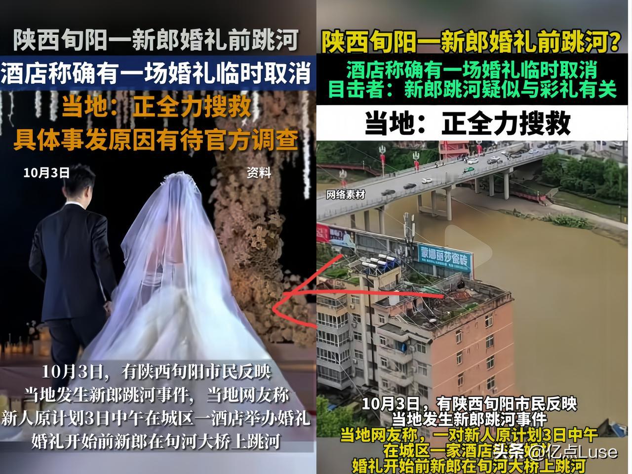 新郎官跳河,陕西旬阳市旬河大桥 没有一点犹豫,直接跳!目击者:有人到岸边想救他,