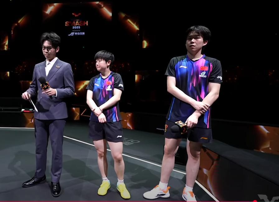 主持人采访王楚钦, 莎莎虽然面无表情, 但下意识动作, 还是说明一切。 主持人