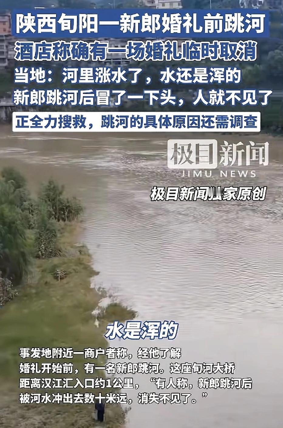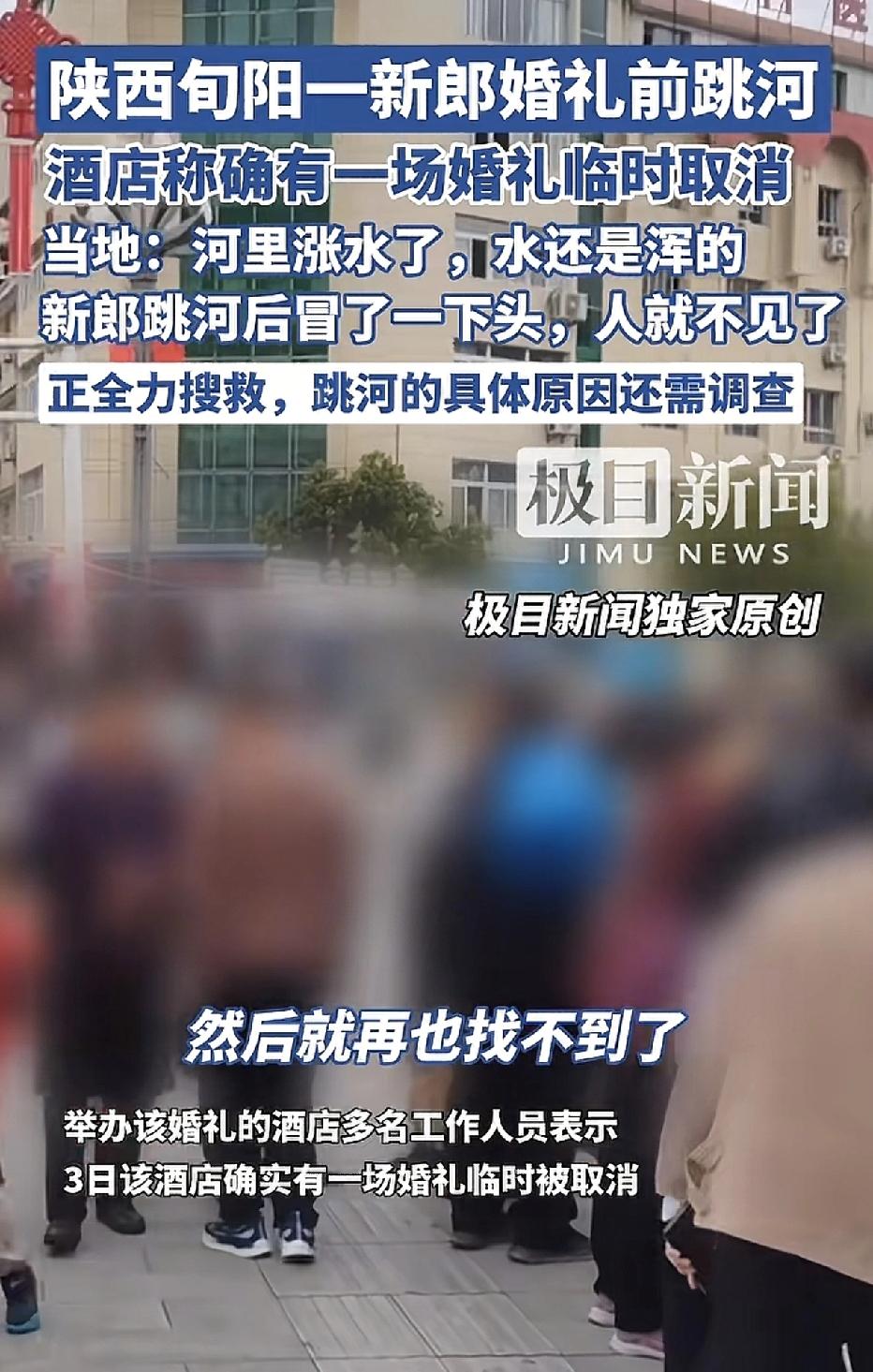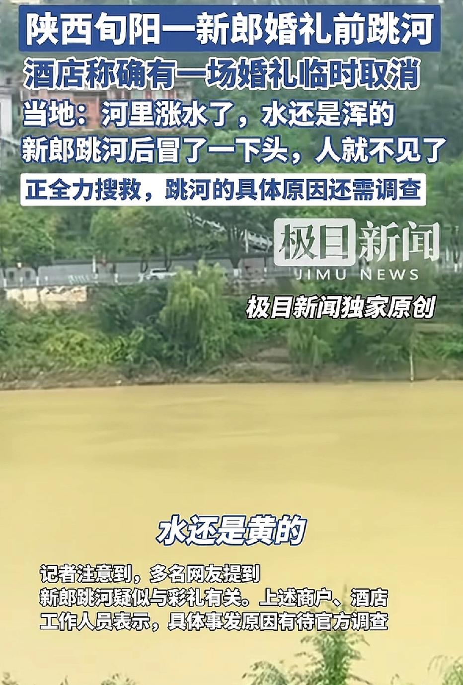 陕西旬阳,一名男子疑似婚礼当天,接亲时新娘家临时增加彩礼,愤而跳河。 婚礼原定
