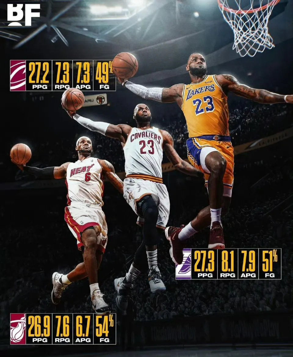 美媒:詹姆斯在骑士、热火、湖人时期数据每一段单独拎出来所获得的荣誉都足以让他进入历史75大!