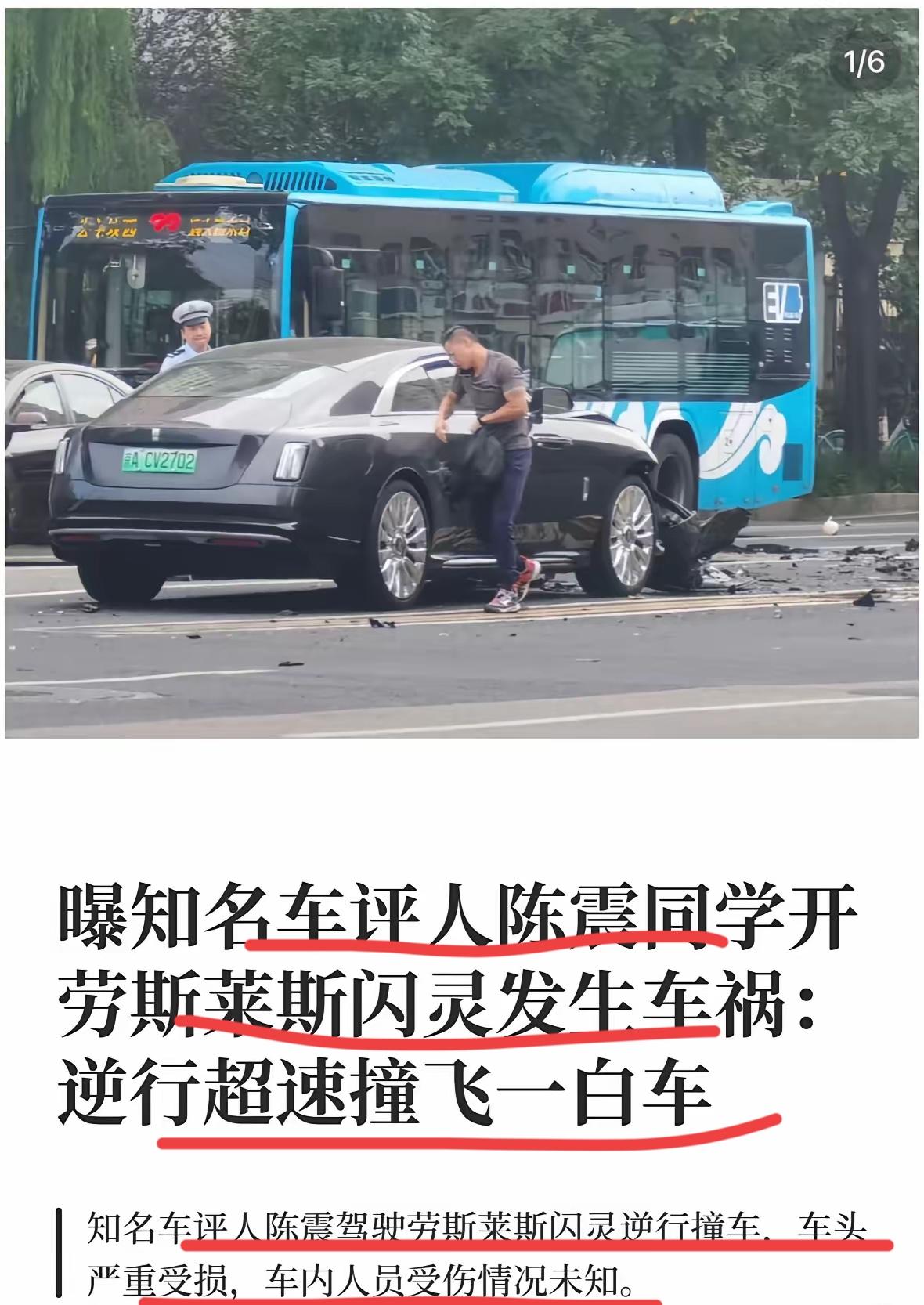 二环十三郎震哥这回亏大了!! 网友爆料称,著名车评人,被誉为二环十三郎的陈震; 开着他的豪车大劳超速逆行,撞上对向车道的一辆BYD宋; 车辆直接被撞到路边的绿化带,损毁严重; 网友目测说,距离被撞的地点有10多米远。 而大劳车头损伤严重,车身稳如老狗; 毕竟大劳3吨多的车,宋车重不到2吨。 震哥的技术应该是没问题的; 但这次主要是逆行加上超速; 此前,他在回复网友的提问时表示,自己的车太多了; 从来不买商业险,因为自己开车规矩,从来不会发生事故。 可惜的是,这次发生了这么严重的交通事故,还是忘了初心了啊。 常在河边走哪有不湿鞋,道路千万条,安全第一条。 最后,希望被撞车上的人没事吧!!
