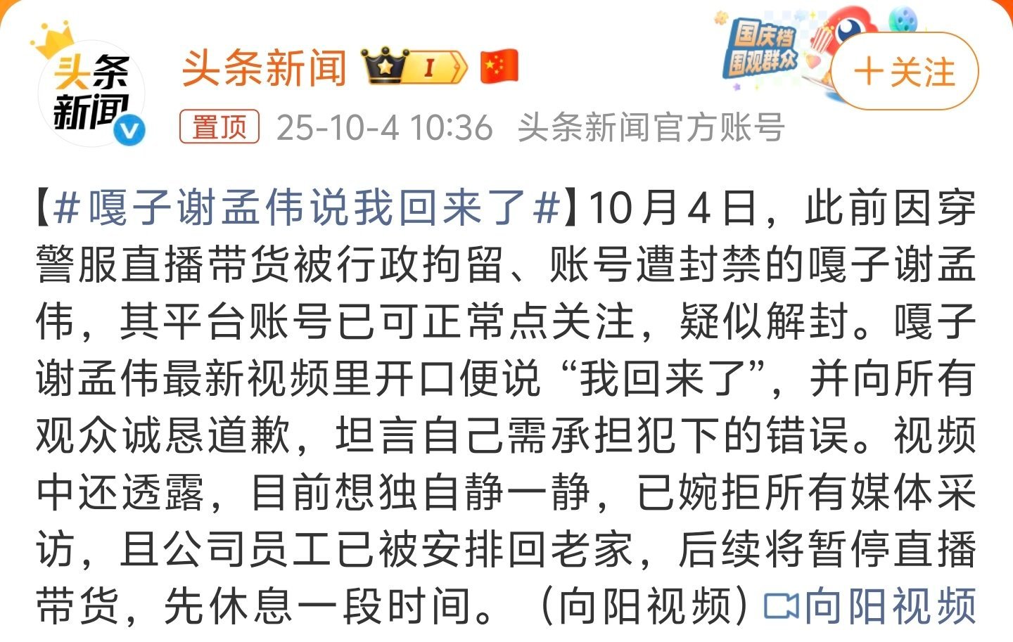嘎子谢孟伟说我回来了这么快就没事了[摊手],看来嘎子还是有人脉啊。老张杂谈