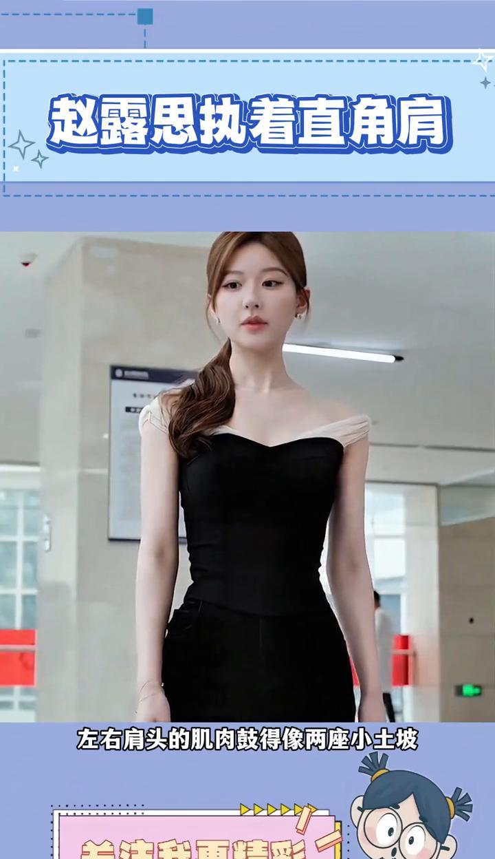 赵露思执着直角肩。 谁看到不说,赵露思的斜方肌太抢镜了。梗着脖子站那儿,左右肩头的肌肉鼓得像两座小土坡,别提多抢镜了。看得出她在用力营造直角肩的效果,可那感觉僵硬又刻意,完全没有美感。她对露肩装情有独钟,真不知道这份勇气从何而来的。