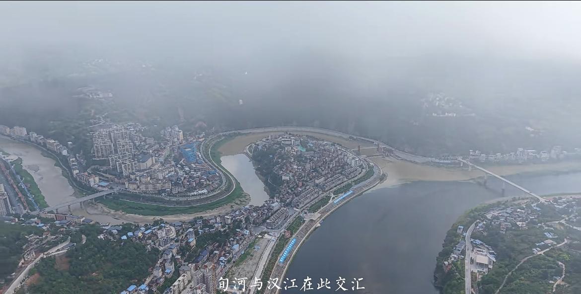 旬阳,旬河与汉江交汇时,旬河以独特的S形河道穿过旬阳城,形成了天然的太极图案,因