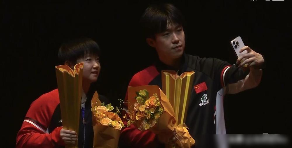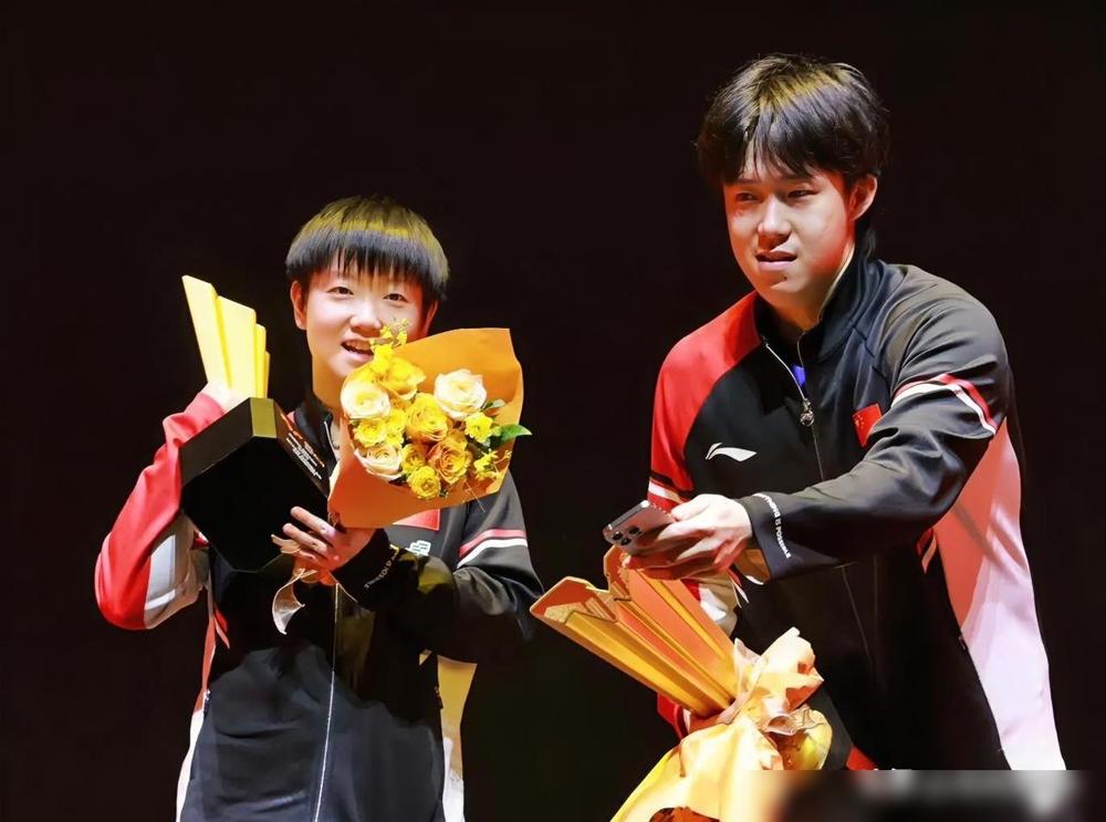 哈哈今天男双颁奖看出来王楚钦的偏心了吧 咱就说运动员领奖那点小细节,真的藏着不少真性情。男双和林诗栋合影时,王楚钦指挥着让搭档拿奖杯拍照,自己倒像个“监工”似的站旁边;可一到混双和莎莎这儿,他倒先念叨“奖杯太重别累着妹宝”,自己把分量全扛肩上了。冠亚军合影更有意思,男双时他和林诗栋规规矩矩保持距离,混双却一个劲往莎莎身边挪,生怕挤着人似的——这哪是“偏心”,分明是搭档间处久了的自然默契。 说起来,王楚钦和莎莎这对“莎头组合”,从青少年赛打到成年组,配合都快十年了。平时训练里,楚钦总爱帮莎莎捡球、递水,比赛中也总主动补位护着她;莎莎呢,也总把关键球的机会让给楚钦,俩孩子处得跟亲兄妹似的。领奖台上这些小举动,看着是“偏心”,其实是彼此信任惯了的下意识反应。 明天他俩还有比赛,就冲这股子互相照顾的劲头,肯定能再给咱整出好成绩!加油吧,莎头