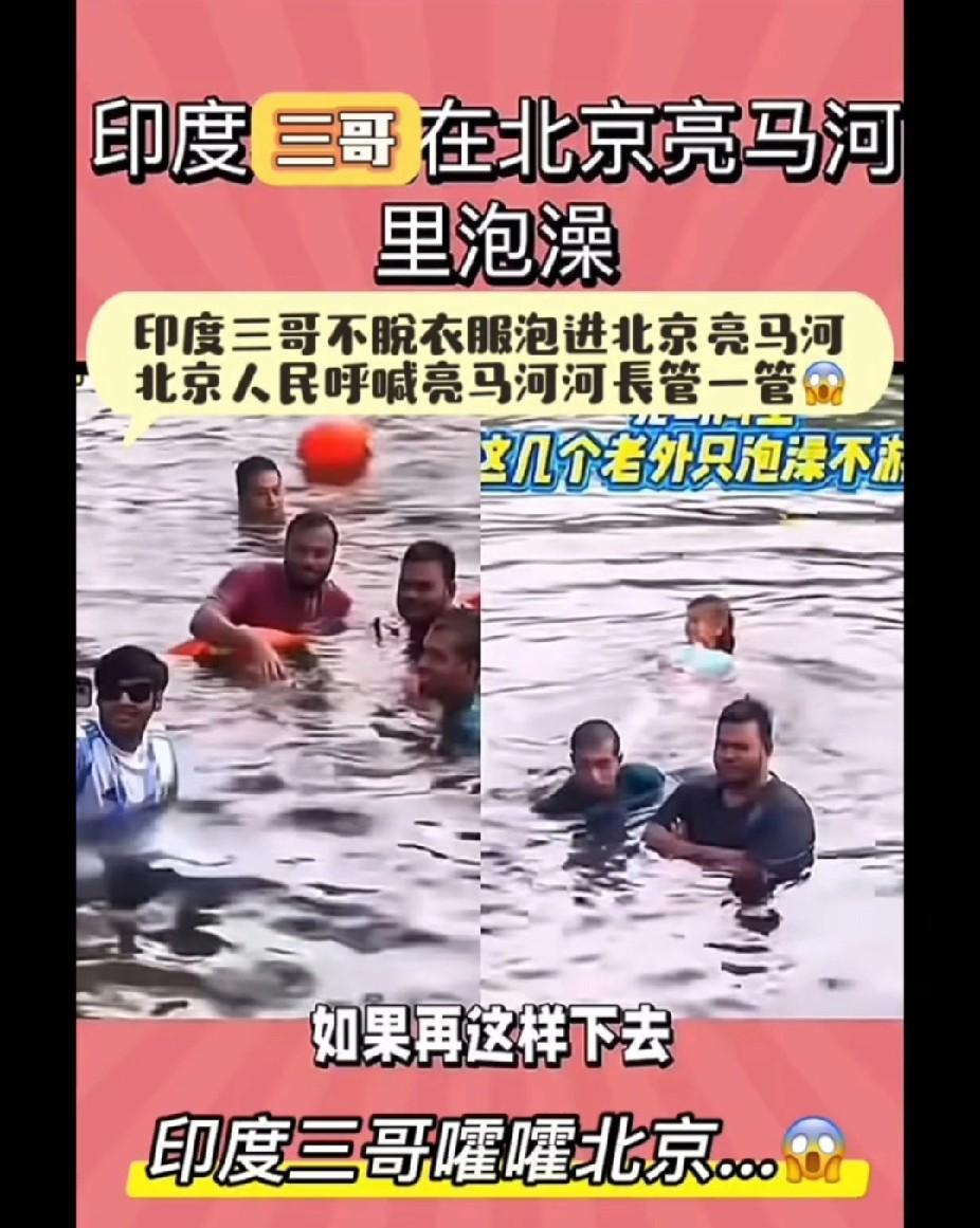 一伙印度人在亮马河泡澡,他们是把中国这条河当成印度的恒河了?这里只想说一句,去年身在加拿大的印度人已经喊加拿大人滚回欧洲了。 加拿大总人口4000多万,而加拿大的印度人已经有200多万了,也就是说20个加拿大人里就有一个印度人。 有句话必须说清楚, 我们中国, 不需要印度人。