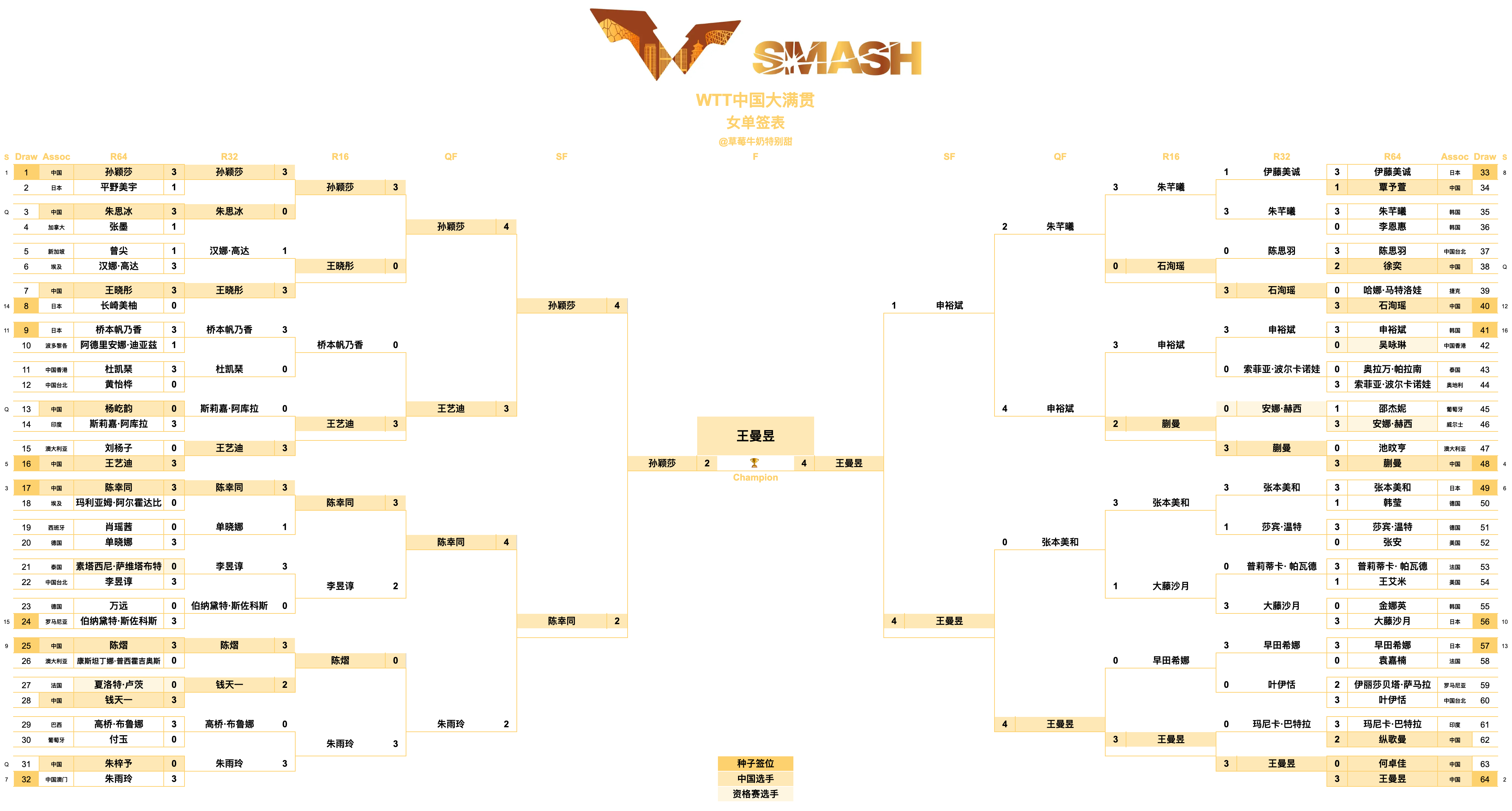 王曼昱🇨🇳获得WTT中国大满贯女单冠军🥇🎉