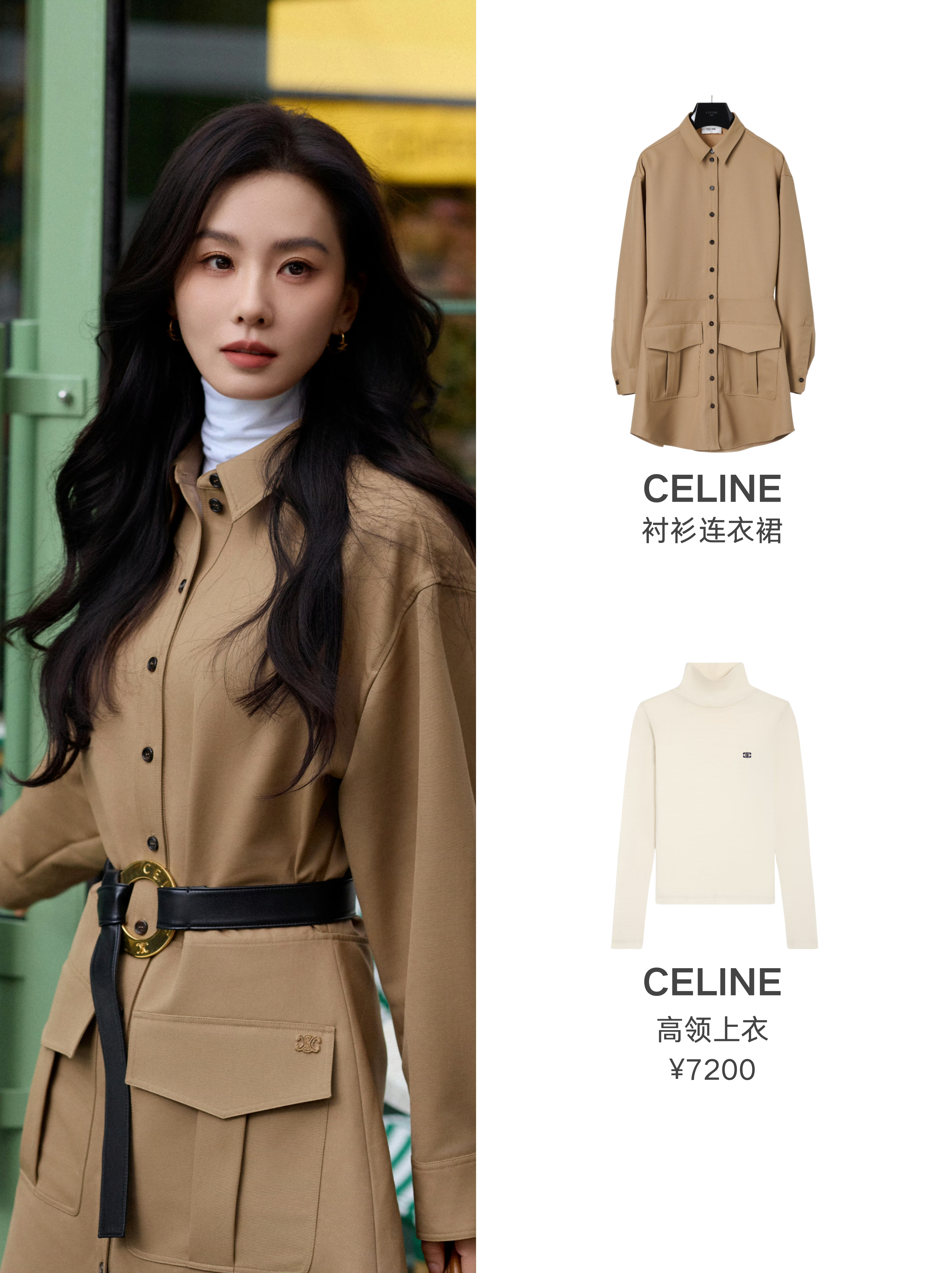 全新一季 CELINE26夏季时装秀 盛大发布。品牌全球大使刘诗诗,以潇洒的衬衫连衣裙内搭白色高领衫造型亮相现场。