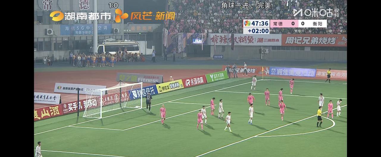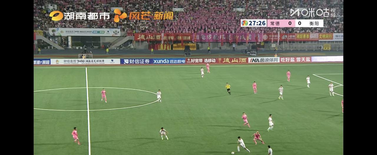我衡阳队加油! 刚刚踢完上半场,比分是0:0 前面十五分钟,是常德队疯狂的想我衡阳队发起进攻,虽然没有一次真正有威胁的进攻,但获得多次角球 后面十五分钟换成我衡阳队开始打防守反击,不断的逼抢,多次在左边路形成高效的推进,可惜总是没有队友能在中路跟上,导致传中没有任何结果(有两次很好的机会,但都差点运气) 也因为双方拼命的逼抢和想打反击,所以体力下降较快,后面显得比较平淡,一直到上半场结束,双方都未能攻破对方球门!