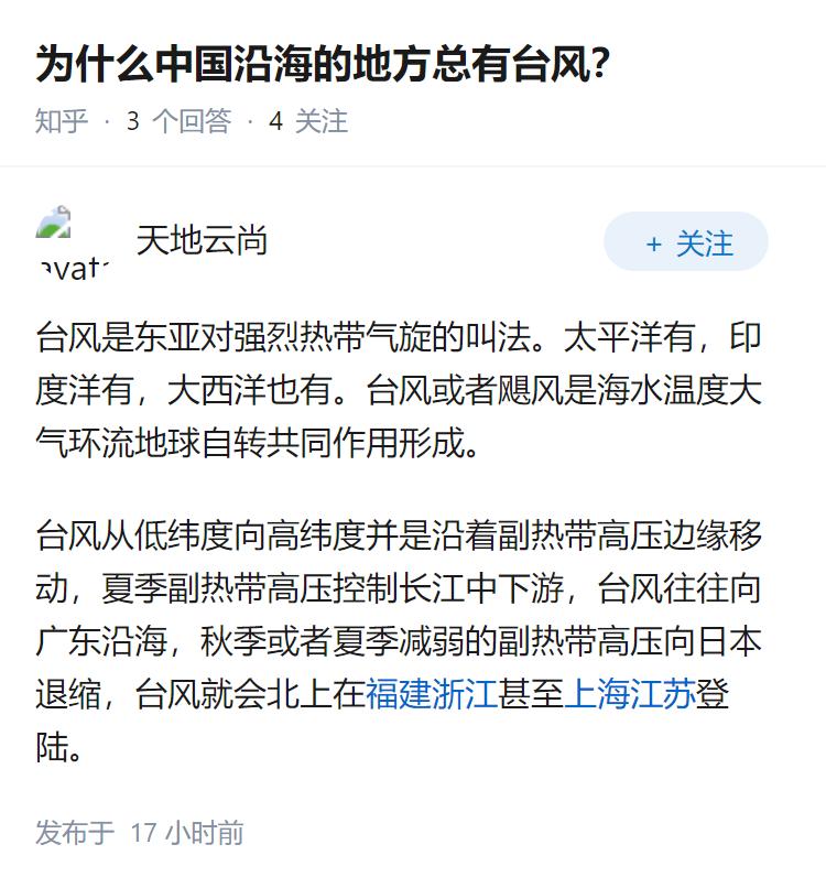 为什么中国沿海的地方总有台风?