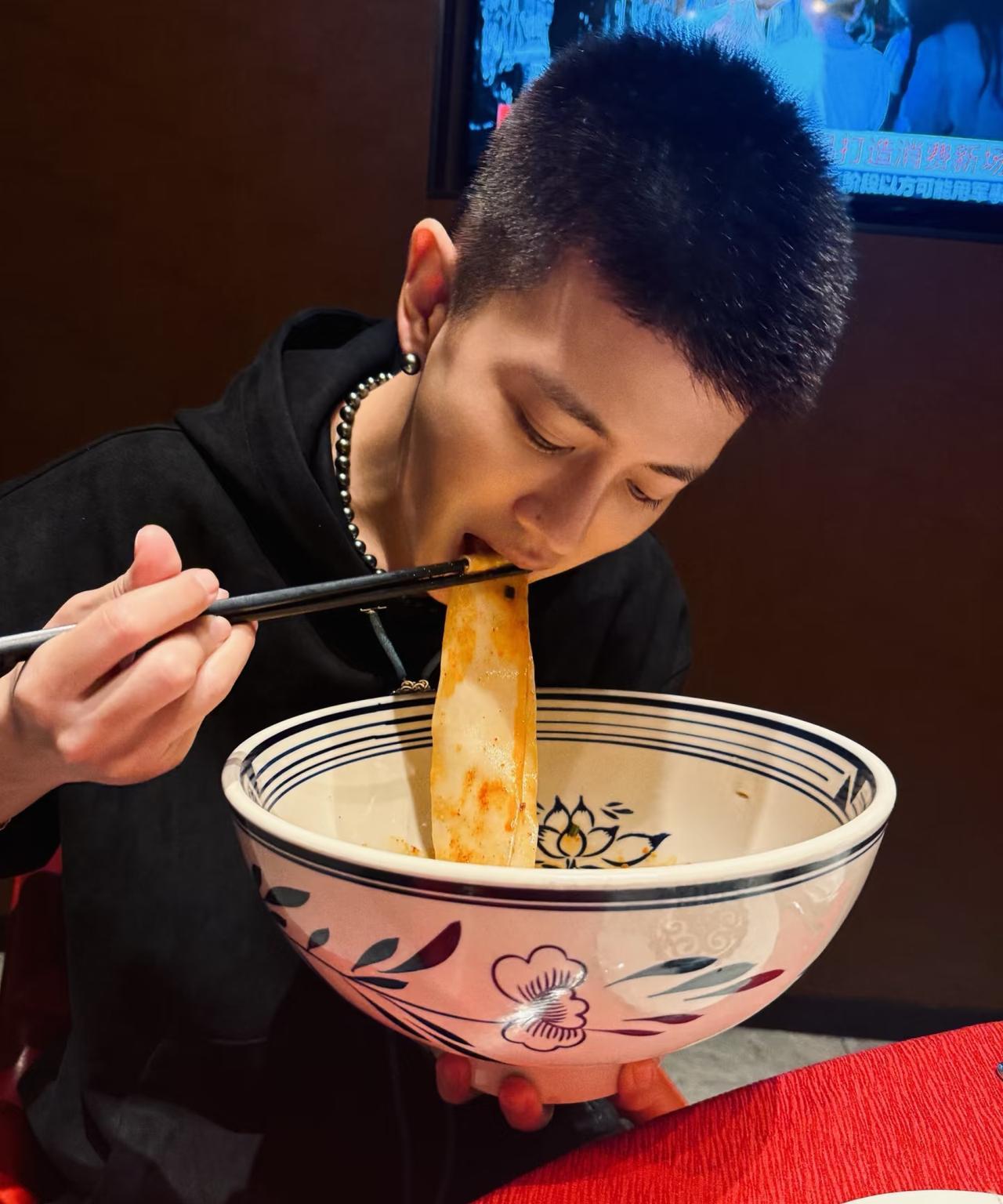哈哈,任嘉伦在吃陕西的裤带面吗? 这碗比他的脸还大两圈不止呢!任嘉伦你是真吃还是