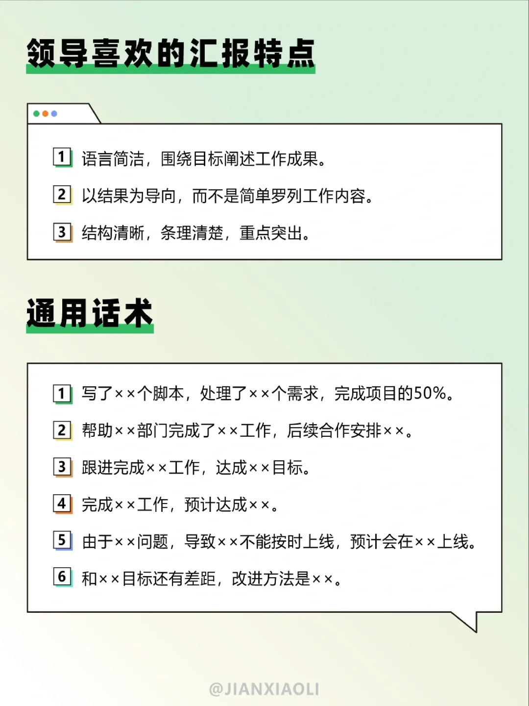 🚫很多人总认为写工作汇报是形式,记录下做了哪些事就好。其实,你的每一次汇报,都是一次展现自我的机会‼️要给领导看你是如何完成工作的,体现出自己的价值和工作结果‼️
