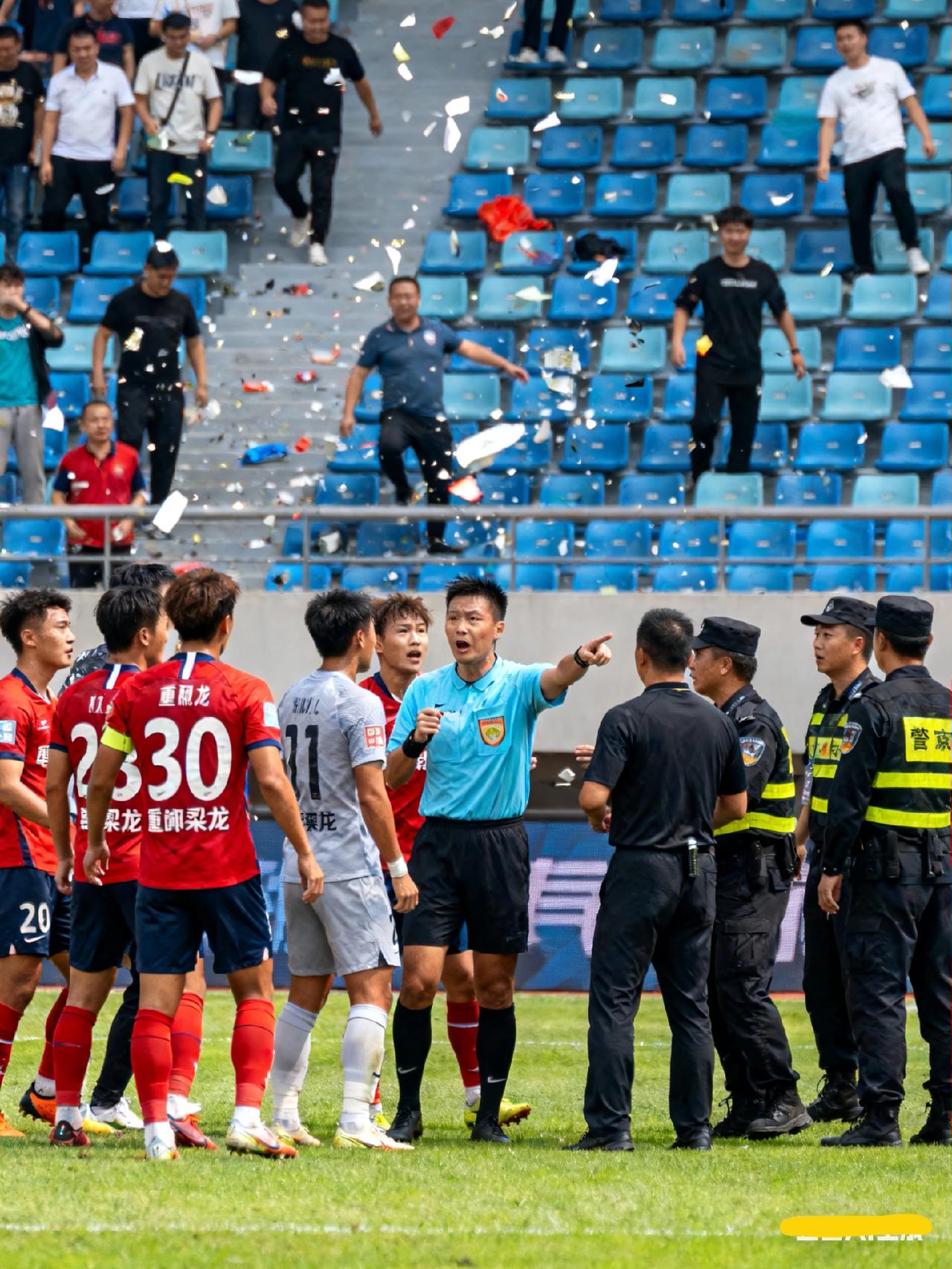 中甲赛场爆冲突!重庆铜梁龙球员怒指裁判,球迷扔物离场,这场风波到底谁的错? 中甲联赛第X轮,重庆铜梁龙主场对阵XX队的比赛,彻底点燃了争议的火花。比赛末段,裁判一次关键判罚成为导火索——铜梁龙球员禁区内倒地,裁判未吹罚点球,反而示意比赛继续。 这一判罚瞬间引爆全场。镜头捕捉到,铜梁龙球员情绪激动,围拢向裁判讨要说法,甚至有球员手指裁判争辩,场面一度混乱。看台上的球迷更是难以抑制怒火,部分观众向场内投掷杂物,还有球迷提前起身离场,现场安保迅速介入维持秩序,才避免冲突升级。 赛后,这场“判罚风波”迅速冲上热搜。支持铜梁龙的球迷认为,裁判判罚尺度不一,关键球漏判影响比赛公平;中立球迷则指出,球员应理性对待判罚,围堵裁判并非职业行为;也有声音提到,主场球迷情绪失控扔物,不仅违反观赛规则,更给球队形象减分。 目前,足协尚未对此事作出回应,但这场风波已折射出中甲联赛的争议点:裁判执法水平如何平衡各方期待?球员情绪管理该如何规范?球迷观赛素养又该如何引导?一场比赛的争议,或许能推动联赛在规则完善与秩序维护上,迈出更扎实的一步。 中超争议判罚 中超争议事件