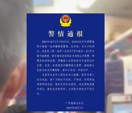 警方通报男子高铁上亲陌生女童 @广州铁路公安处:2025年10月3日17时37