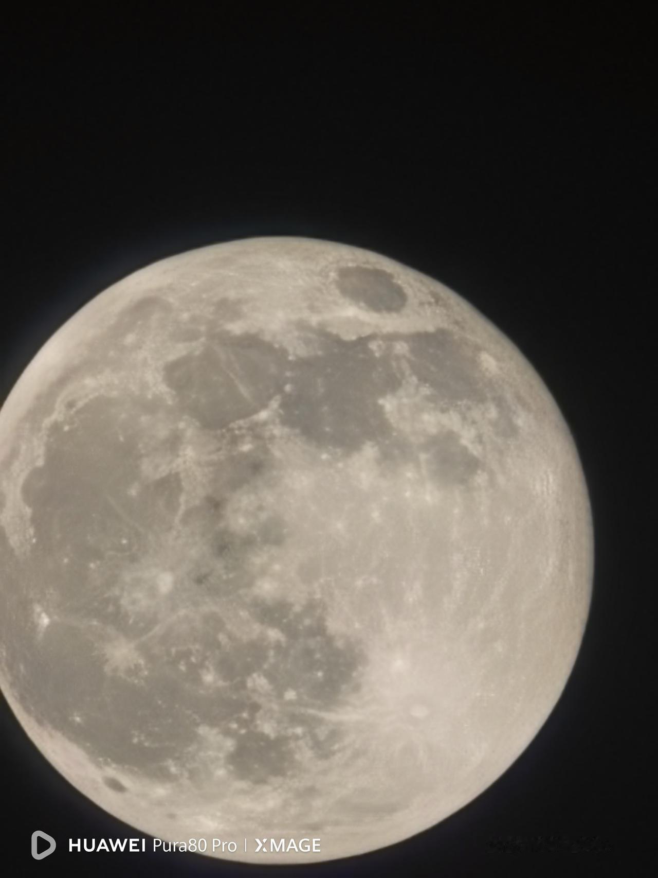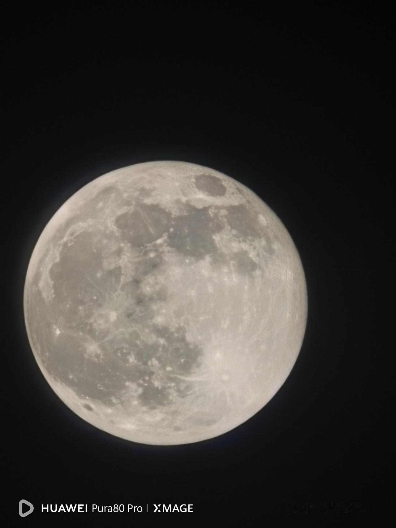 华为Pura 80 pro“望月模式”效果如何? 都说十五的月亮十六圆,在华为Pura 80 pro“望月模式”下,今晚的月亮果真特别圆,比肉眼下清晰很多! 坐在阳台,喝着茶,吃着月饼,欣赏着手机中的圆圆的故乡月,瞬间觉得当初花了一个月工资入手这部手机的心疼感觉,减弱不少!