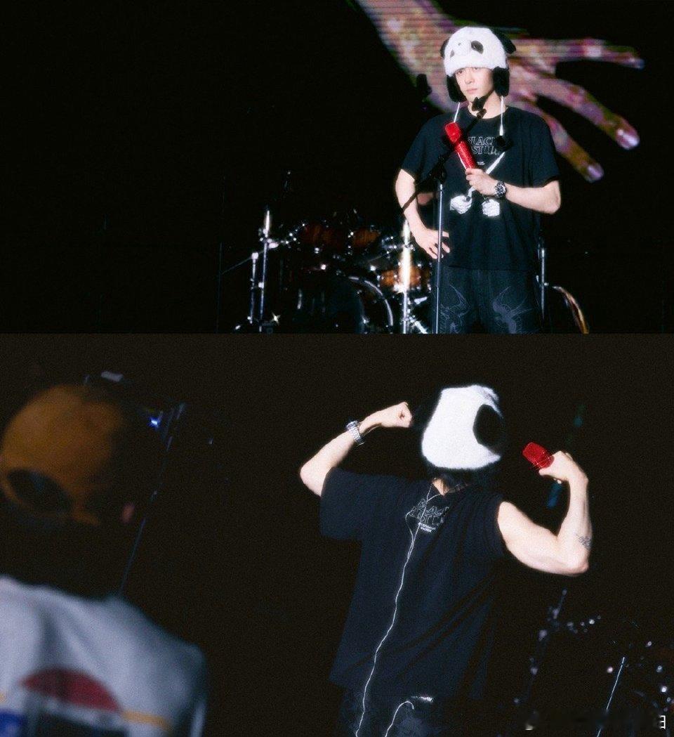 有个叫曾舜晞的熊猫在台上蹦跶 曾舜晞彩排现场萌出新高度!熊猫帽+黑T,蹦跶晃头像只大熊猫,手臂肌肉线条太绝,今晚音乐节必看!