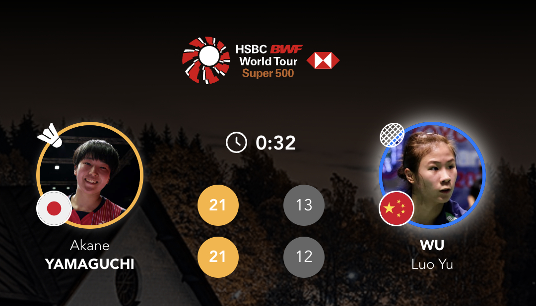 邬洛愉🇨🇳 13-21、12-21 🇯🇵山口茜