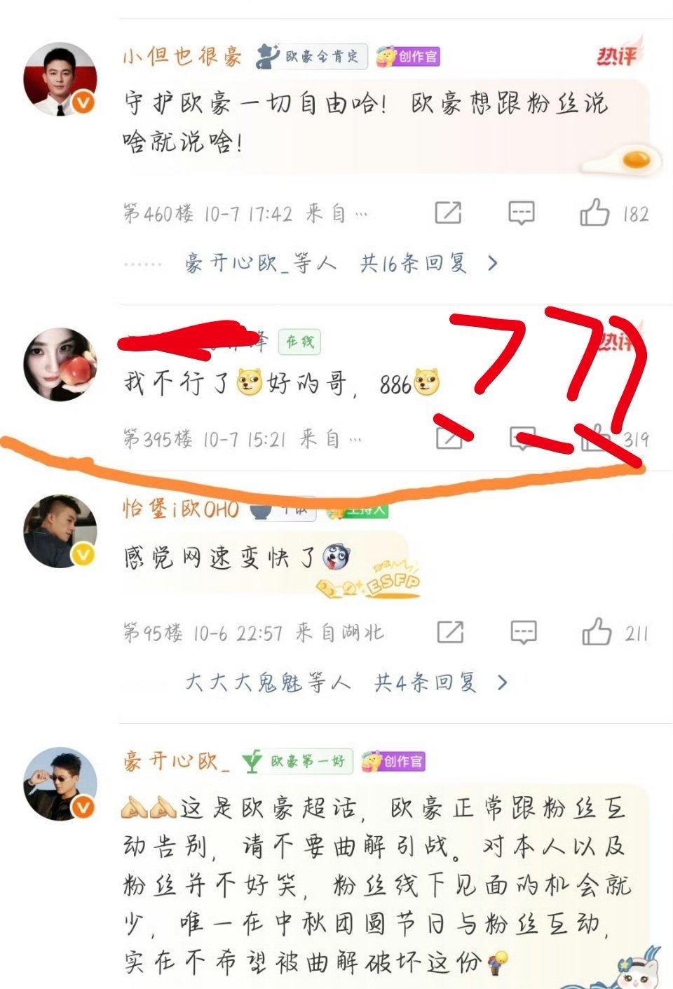 欧豪正常和粉丝互动别东扯西扯的,再说了886也刺激不到谁吧[yeah]毕竟人家都有奖在手了[泪奔]