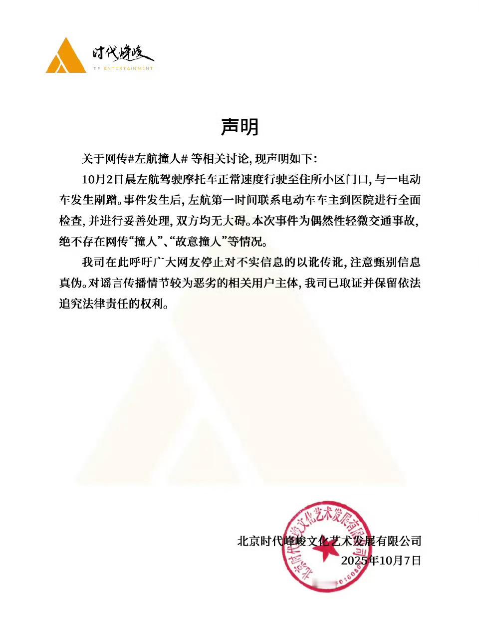 2 号出的事,当天处理好了6 号更新微博很正常吧?[柯基][柯基][柯基]时代峰峻回应左航撞人左航 剐蹭