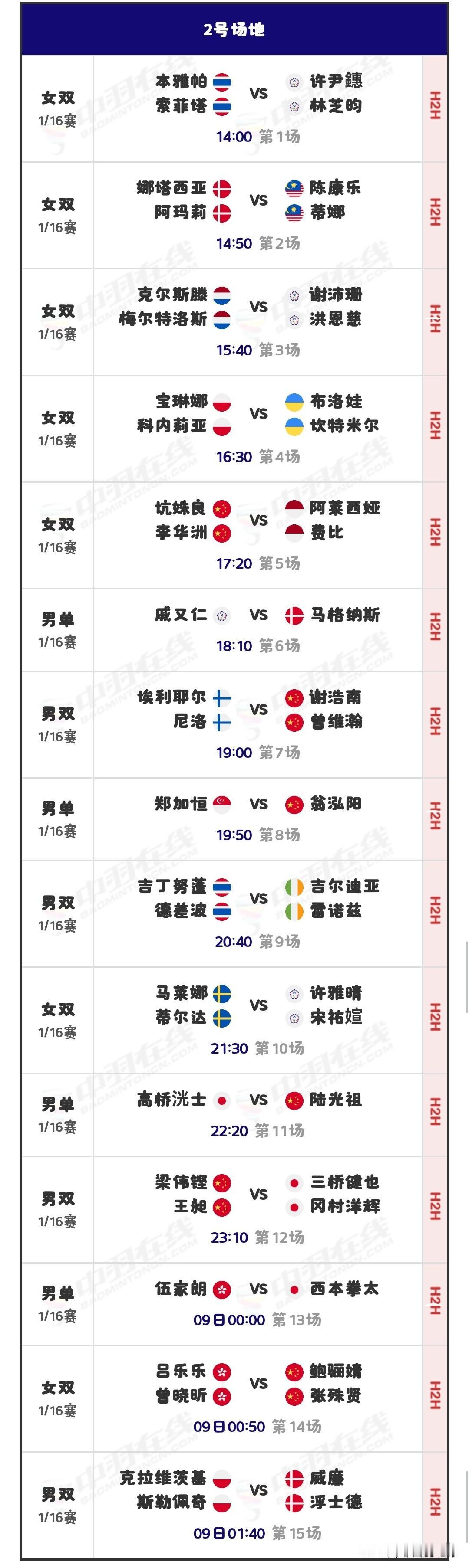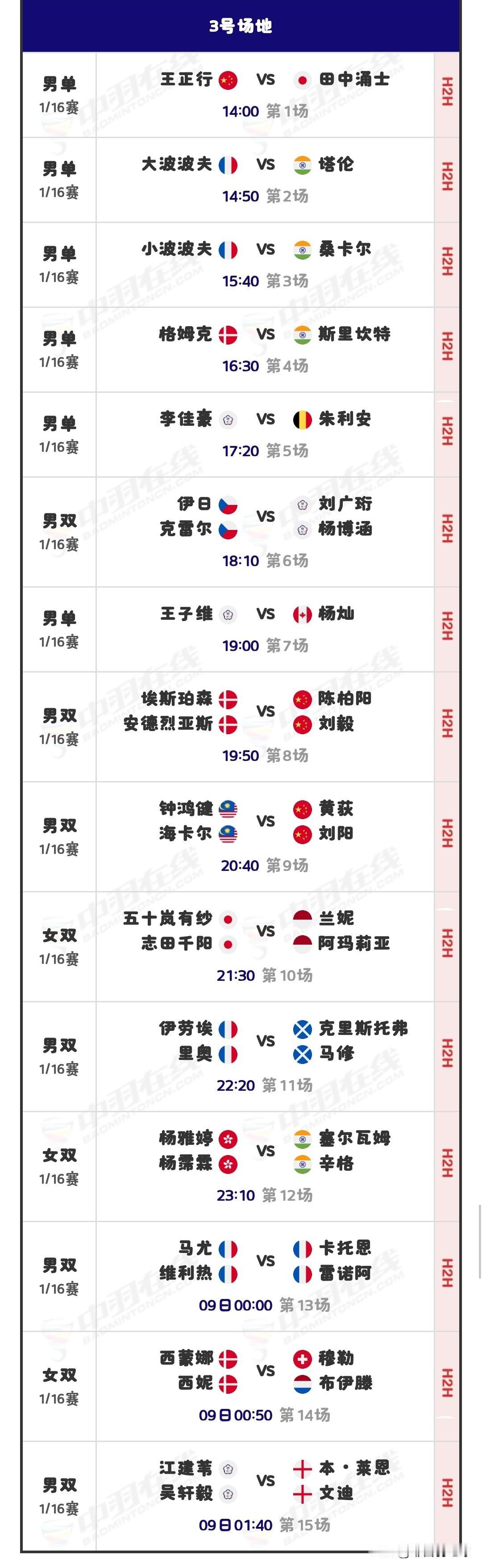10月8日北极羽毛球公开赛1/16决赛(二)赛程安排 昨日,国羽在赛场上斩获3
