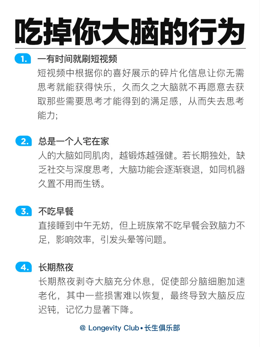 本以为是年纪大了🧠不好使! 原来是日常中老做这些行为,才导致🧠被逐渐吃掉 大家来看看,有没有中 附带8个锻炼脑子的方法给大家! 帮紧你~帮紧你~