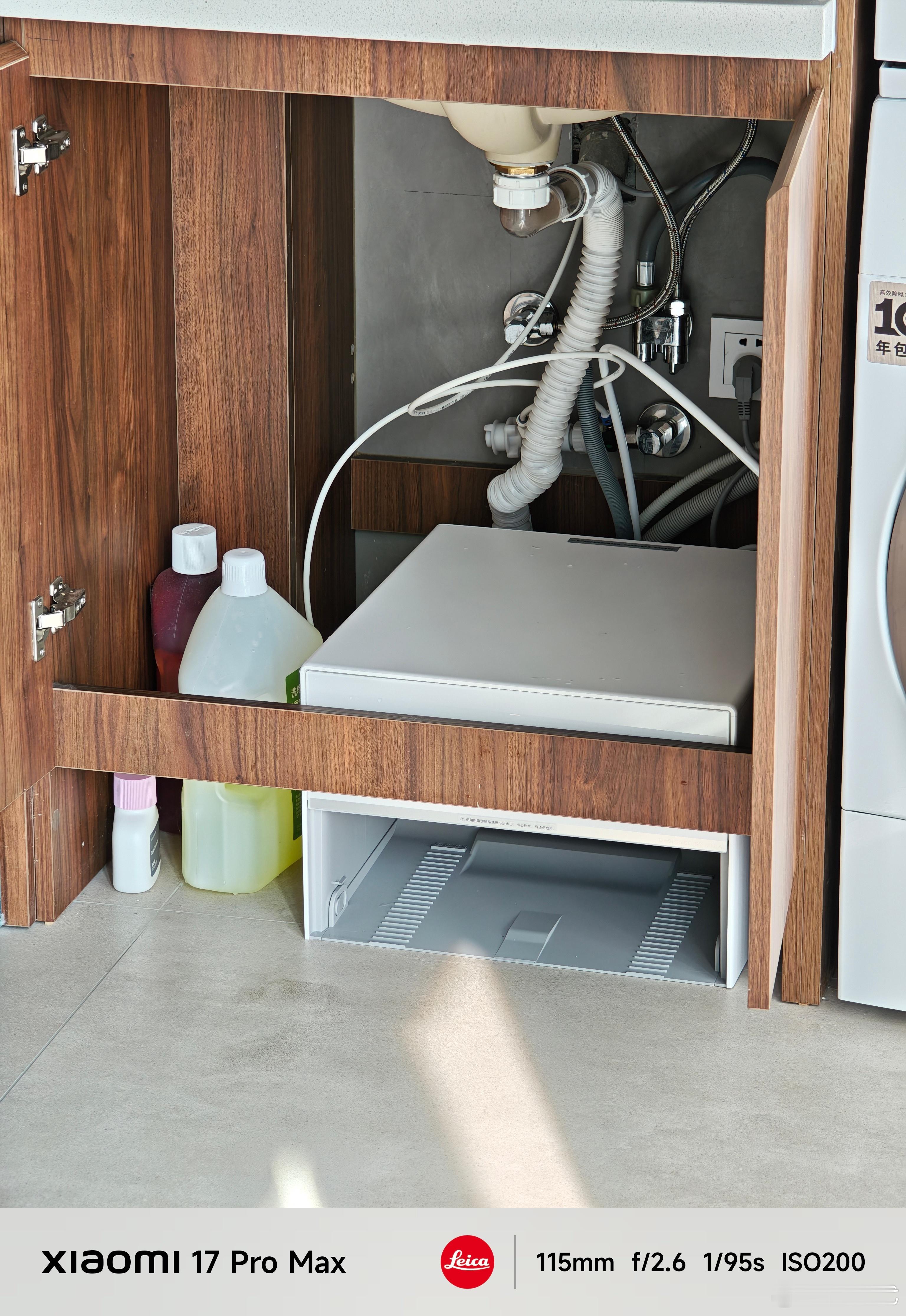 把家里的米家M30 Pro升级成5 Pro薄嵌上下水版 ,直接节省一大半的空间,水池下头还可以囤好多洗衣液、消毒水!下楼买扎带理线,完美[嘻嘻]