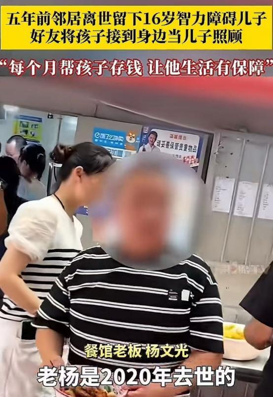 “这才是应该评选感动中国的人物!”2020年,52岁男子临终前,将16岁的智力障碍儿子托付给自己的挚友,而挚友为了让男子走的安心,拍着胸脯保证:“只要有我一口饭吃,就不会让他饿着!”转眼5年过去,现在小熊的变化让人泪目! 小熊是先天智力障碍,平常吃饭穿衣都得有人盯着,生活上离不了人长期照顾。 朋友在世的时候,每天天不亮就起来给小熊做早饭,熬得软烂的粥,配着小熊爱吃的小菜,就怕小熊咽着。 小熊穿衣服慢,扣子总扣错,朋友就耐着性子帮他理好衣领,一个扣子一个扣子教他扣。 有时候小熊情绪不好,哭闹着不肯吃饭,朋友也不生气,就抱着小熊坐在门口,指着天上的云跟小熊说话,等小熊情绪缓过来了,再慢慢喂饭。 可如今朋友不在了,这小熊连顿热饭都未必能按时吃上,更别说好好照顾自己了。 弥留之际,朋友拉着杨先生的手,力气越来越小,话都说不利索了,眼神里的担忧和托付,他比谁都懂。 杨先生回到家,坐在院子里的小板凳上,抽了好几根烟,琢磨了好几个晚上。 他想,朋友一场,不能眼睁睁看着小熊没人管,最后还是下定了决心,把小熊接到自己家里,当成亲生儿子一样照顾。 他对朋友说:只要自家锅里还有一口吃的,就绝不会让小熊饿着肚子。 可这决定真不是随口说说那么容易。 杨先生自己也有家庭,家里有媳妇,还有正在上学的小熊。 多添这么一个需要特殊照顾的娃,往后的日子肯定得变个样。 杨先生原本还担心媳妇会反对,毕竟这事儿确实会给家里添不少麻烦。 没成想,他跟媳妇把想法一讲,媳妇没多犹豫就点了头。 小熊刚到新家那天,显得特别不安。 杨先生知道,这小熊突然离开熟悉的家,到了一个全是陌生的地方,心里肯定又怕又慌。 夫妻俩没再说话,就坐在旁边陪着,让小熊自己慢慢适应。 接下来的日子,夫妻俩就用行动一点点暖小熊的心。 媳妇每天变着花样给小熊做吃的,知道小熊爱吃软一点的面条,就把面条煮得久一点,还在里头卧个荷包蛋。 杨先生每天下班从饭店回来,也不着急歇着,总会坐在小熊旁边,陪小熊看看电视里的动画片,或者拿几张画纸教小熊画简单的小动物。 他们从不强迫小熊说话,也不催小熊马上适应,就给小熊足够的时间。 慢慢的,小熊紧绷的肩膀放松了,再递给他水果的时候,他会伸手接了;有时候看到窗外的小鸟飞过,还会用手指指,让杨先生看。 可杨先生和媳妇年纪越来越大,不可能一辈子都陪在小熊身边。 他还这么年轻,往后的路还长着呢,总不能一直靠着别人照顾。 最要紧的,是让小熊学会自己照顾自己的本事,哪怕只是最简单的吃饭、穿衣,也得让小熊自己能做。 杨先生在镇上开了家小饭店,平常店里不忙的时候,就从最基础的事儿教小熊。 先是教小熊自己吃饭,小熊的手劲控制不好,碗总往下滑,杨先生就坐在小熊对面,握着小熊的手,一遍一遍教他怎么用力;筷子夹不住菜,杨先生就先让小熊夹豆子,练熟了再夹菜。 然后又教他洗碗、切菜、待人接物。 让人高兴的是,小熊虽然学得慢,但是却特别认真。 他好像能感受到杨先生的好意,学的时候眼睛一直盯着杨先生的手,生怕漏掉一个动作。 有时候杨先生教完一遍,小熊会自己再练好几遍,直到差不多能做好才停下。 半年过去,小熊已经能自己端着碗吃饭,衣服也能自己穿好,甚至还能给客人上菜。 这些进步看着不大,可杨先生每次看到,心里都跟吃了蜜似的,觉得这么久的付出没白费,也看到了盼头。 此外,杨先生每个月还会帮小熊存点钱,再加上他的低保金,以后的生活也不用再让人担心了。 其实,这事儿没有啥轰轰烈烈的场面,也没有啥惊天动地的举动,最打动人的,就是杨先生夫妻俩日复一日的坚持。 他们没说过啥豪言壮语,只是每天做好三顿饭,看着小熊吃饱;没做过啥特别的事,只是每天陪着小熊,教小熊一点小技能。 那份对朋友的承诺,就是用每一天的实际行动在履行。 如今,这特殊的一家子还过着平平淡淡的日子。 杨先生夫妻俩的愿望也特别简单,就是盼着小熊再大一些的时候,能完全照顾好自己,不用再让人时时刻刻操心。 其实这世界之所以让人觉得温暖,就是因为有很多像杨先生夫妻俩这样的普通人。 他们没做啥了不起的大事,只是用最朴实的方式,守着心里的那份情义,护着身边需要帮衬的人。 一句承诺,就是一辈子的责任,这就是咱们心里最看重的信义。 有这样的人在,日子就总有股子暖意,也总有让人安心的力量。 来源:第一眼新闻