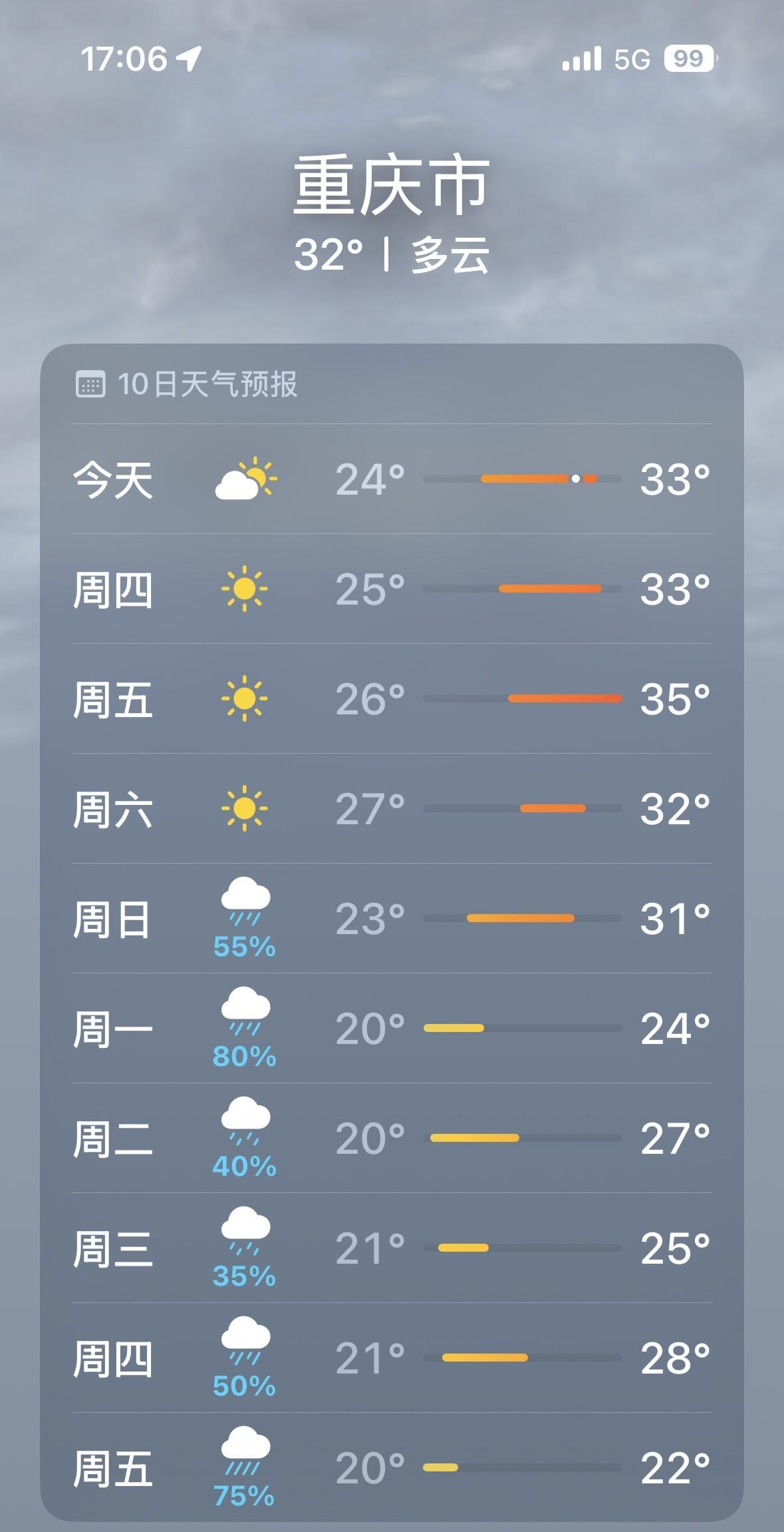 啊!重庆人的35度高温酷暑,即将彻底结束!10月12日,星期天,重庆小雨大雨,重