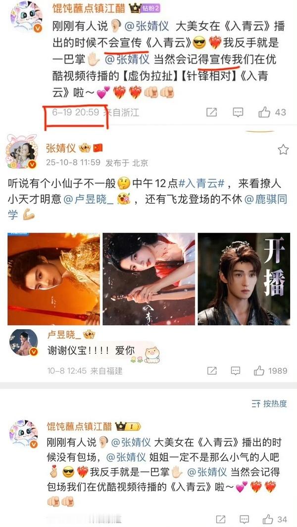怎么看待现在的乞讨式云包场的行为[疑问]?卢昱晓粉丝直接贴脸张婧仪要求还之前给张婧仪电影的云包场,张婧仪发了单独的宣传博+500份云包场之后粉丝还在人家发的宣传博底下贴脸,真的很败好感了
