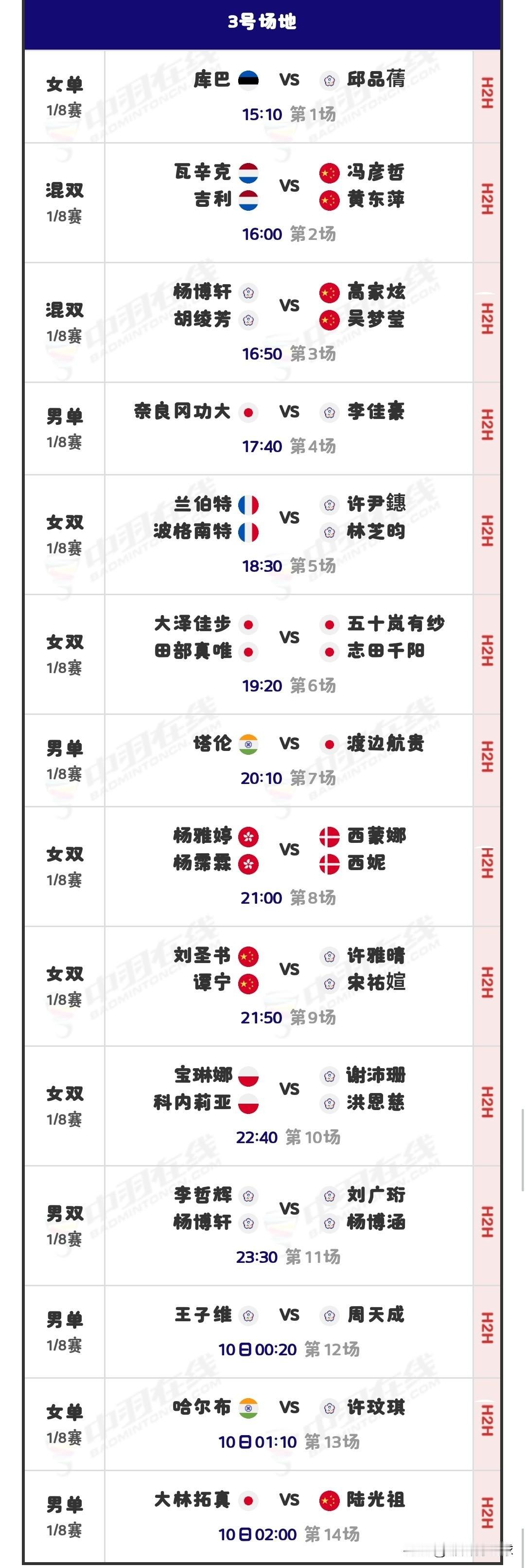 10月9日北极羽毛球公开赛1/8决赛安排 昨日,国羽在比赛中斩获7胜4负的成绩