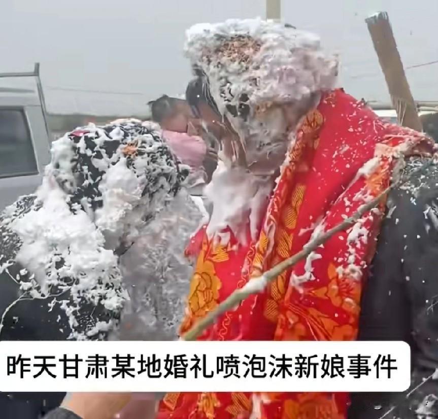甘肃某地新娘被喷泡沫事件,听说棕色衣服跟新郎是亲密关系第一的人,还在婚房自拍 这个棕色鹌鹑蛋眼里没有一丝祝福 ,全是对新娘子的嫉妒。看了鹌鹑蛋和这些行为和言论,只感觉相由心生这句话是正确的。像极了看到一只大蟑螂,赶紧抄起一瓶杀虫剂使劲摇几下,然后怼着大蟑螂猛喷的样子,目的就是让它死 这种婚闹太低俗,人家新娘化了妆,穿了美美的婚纱,结果…遇到婚闹,新郎不制止,新娘可以直接跑了真的。看他亲戚什么品格大概率就能让你重新审视这个人了,这在南方能被打进医院的程度