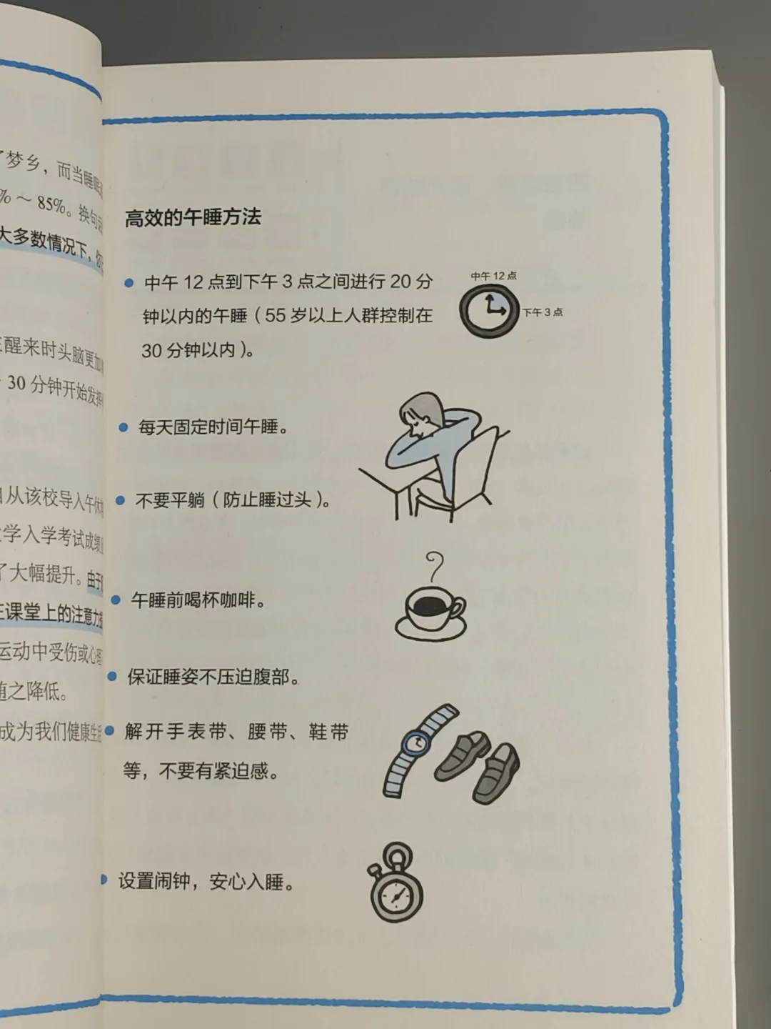 ◎建议在中午12点到下午3点之间安排一次不超过20分钟的小睡。