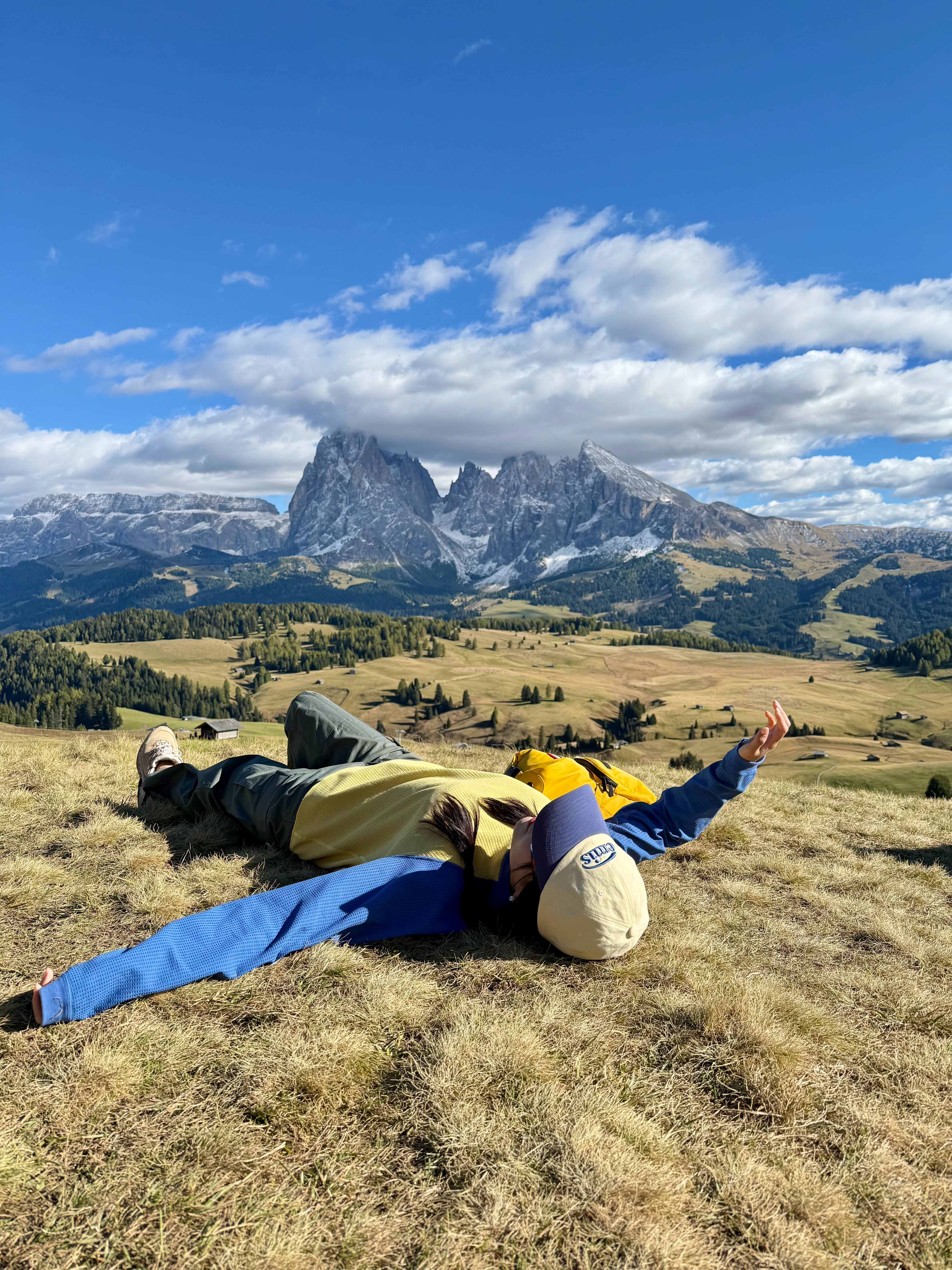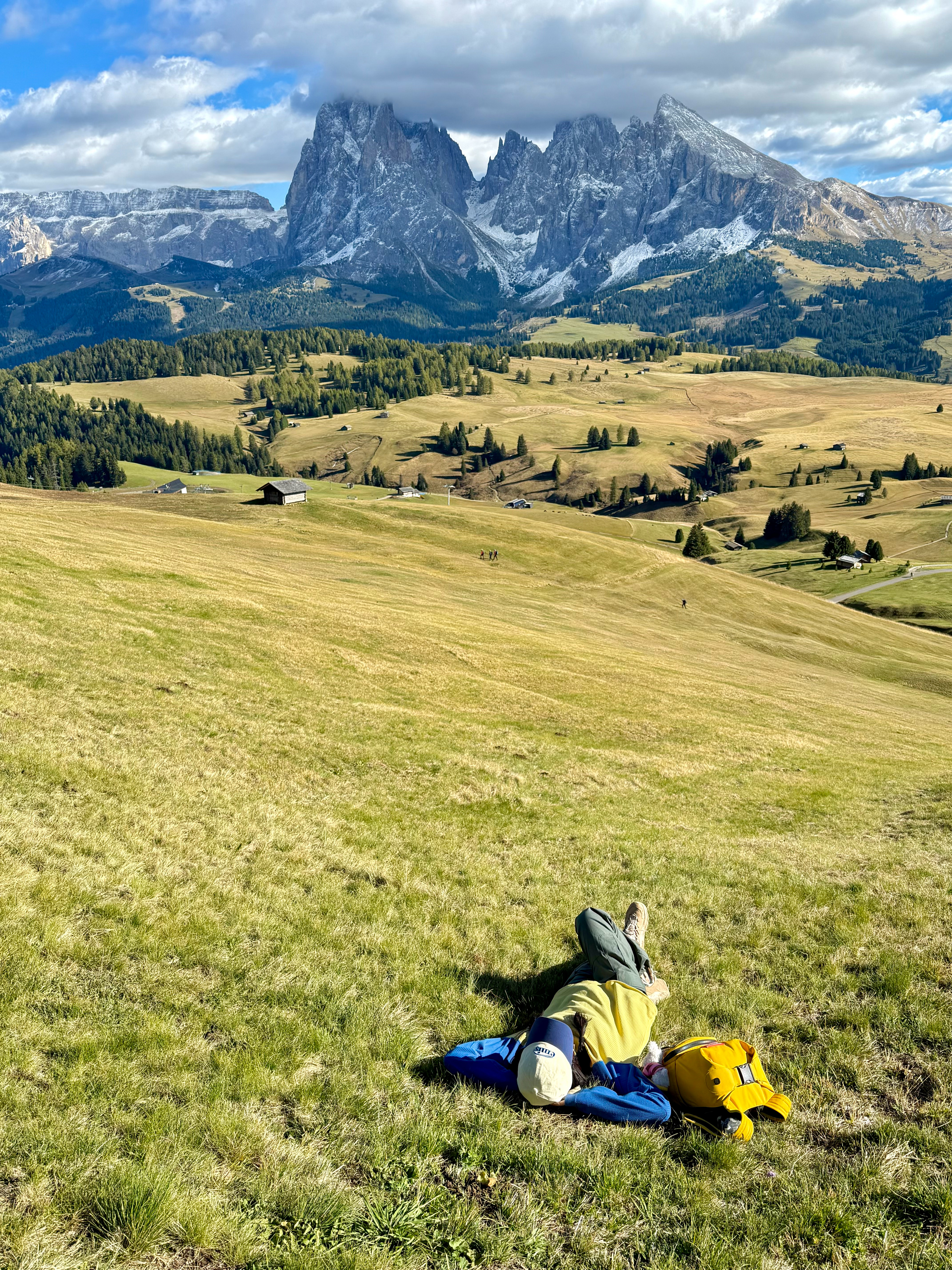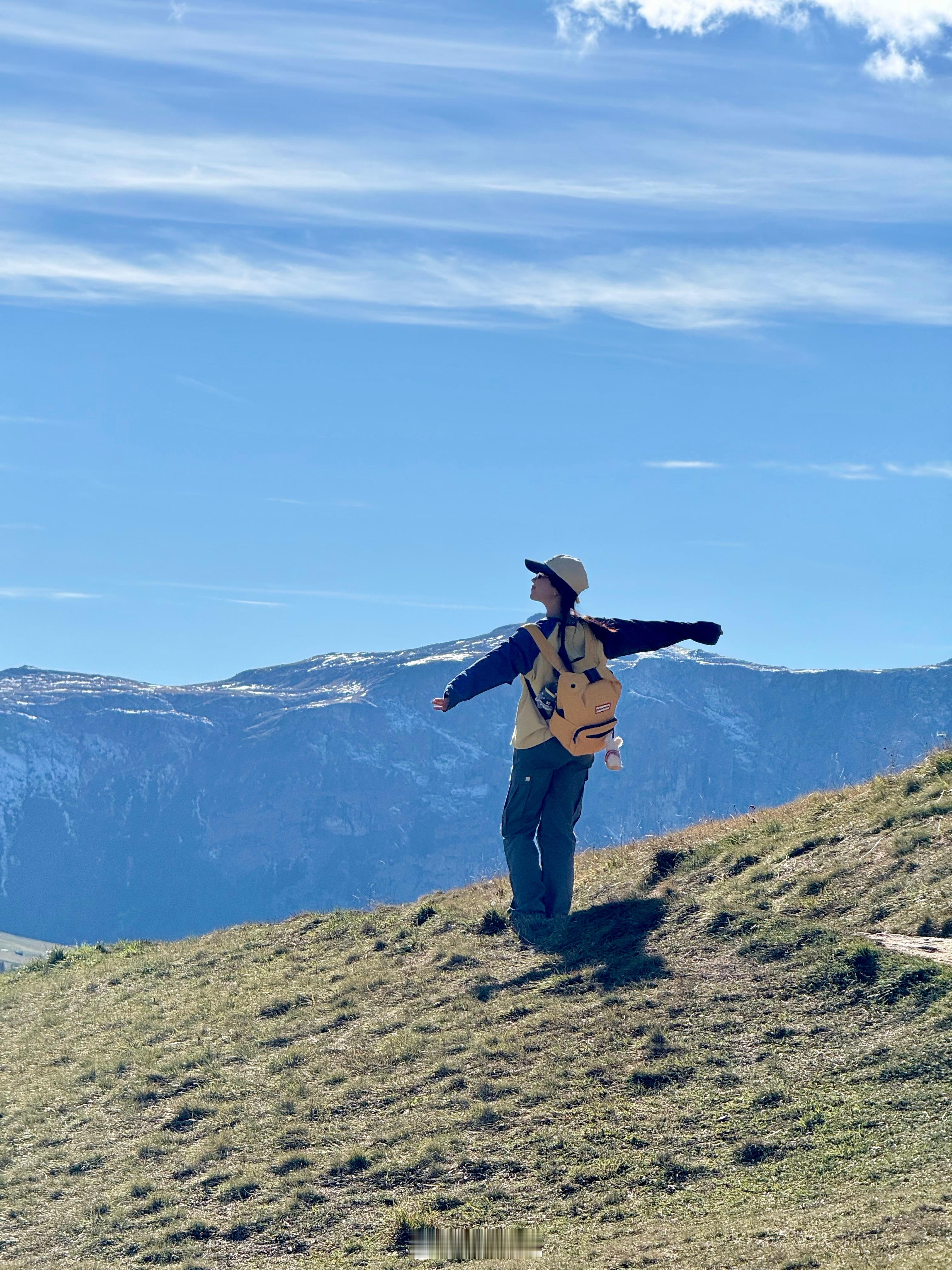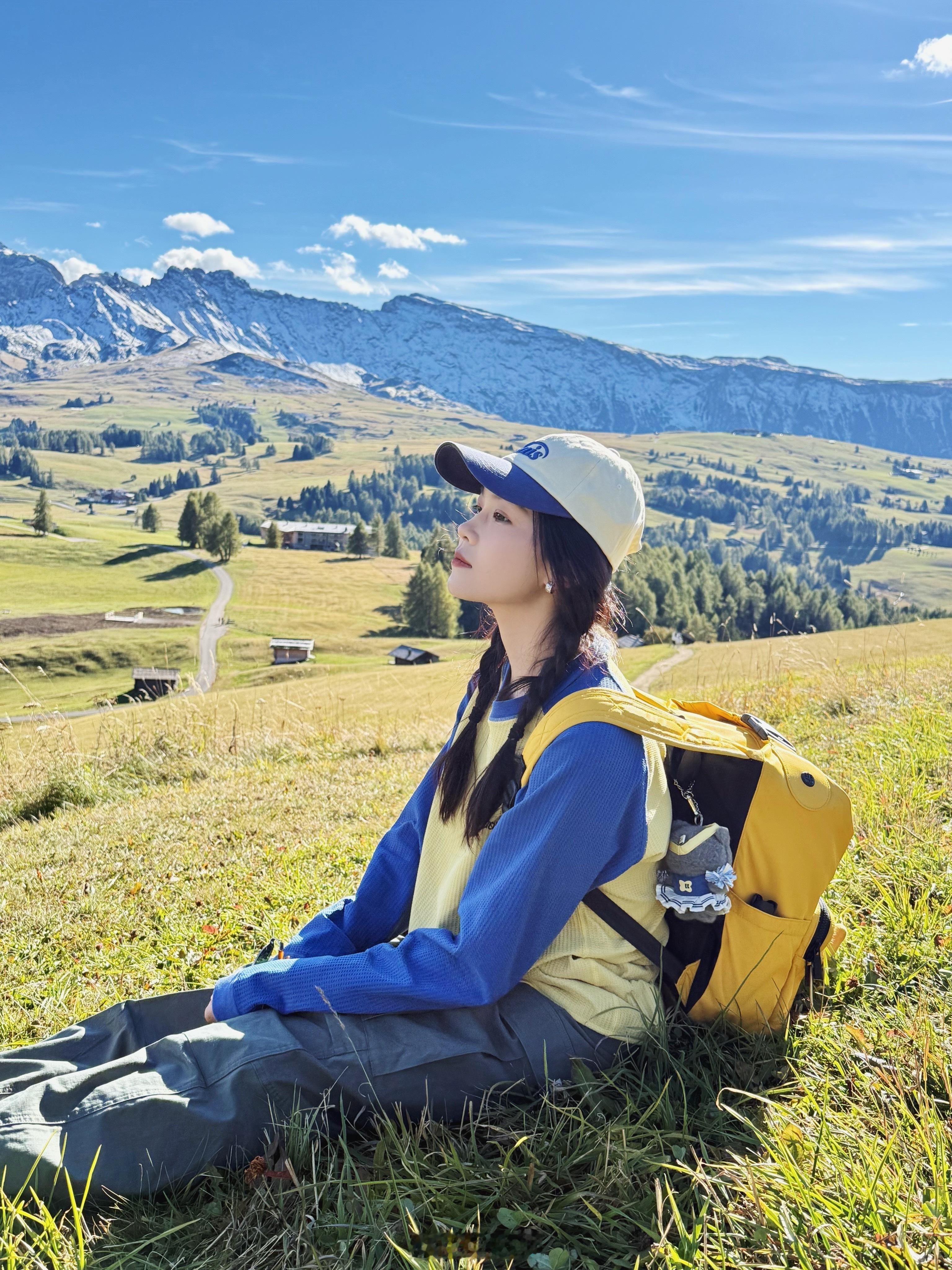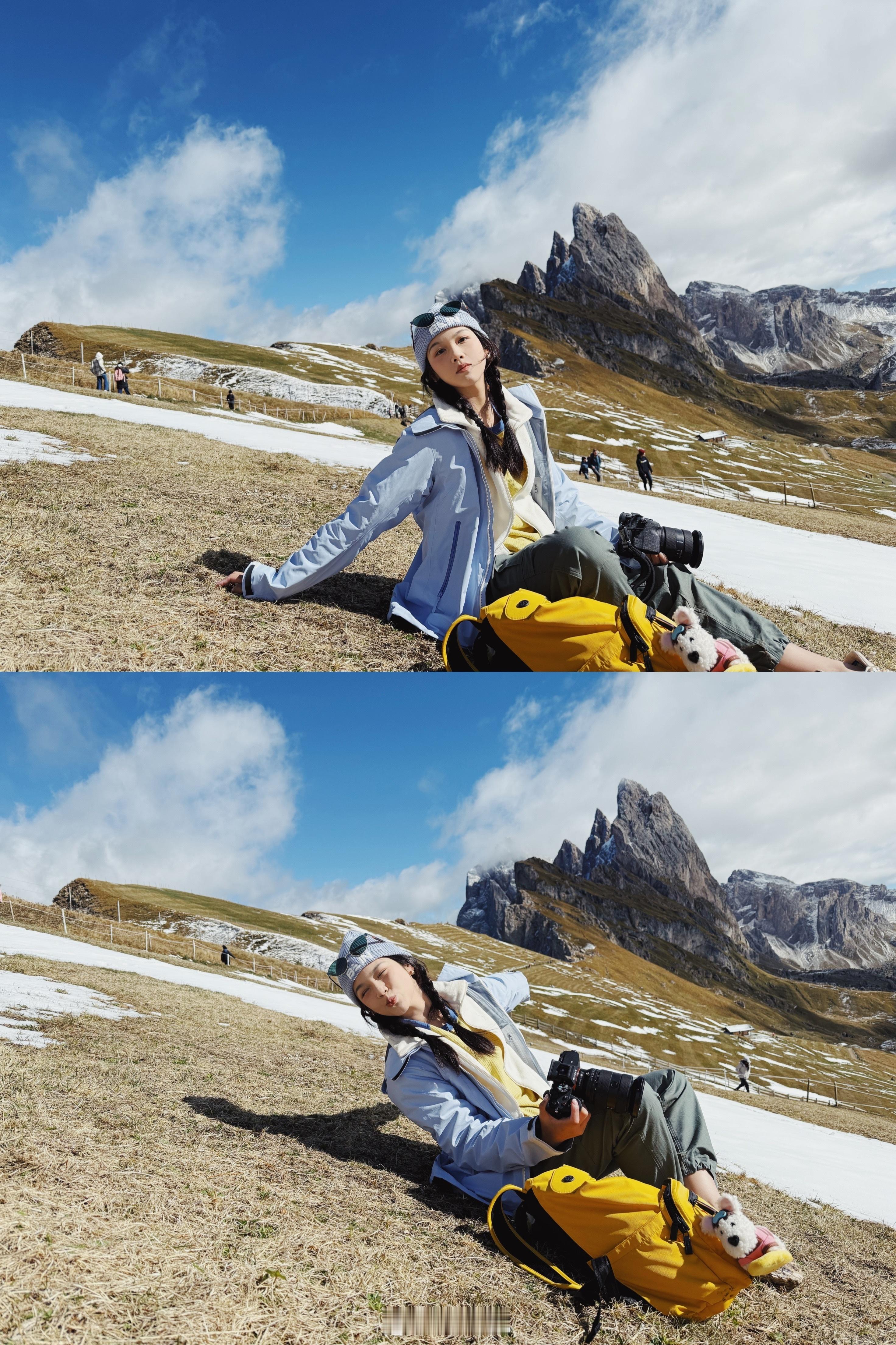 躺在雪山下的草地上听音乐 晒太阳 吃路餐