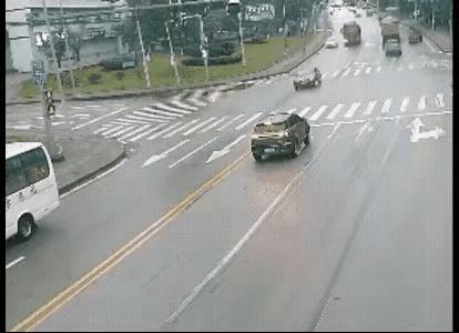 大货车太坏了,小轿车太虎了,骑摩托车的太无辜了,因为斗气,大货车和小轿车你争我赶,酿成了一起车祸。 一个男子骑着摩托车缓慢行驶,想在一辆黑色轿车后面停下来。 对面一辆白色轿车和一辆红色大货车并驾齐驱,谁也不让谁,白色轿车加速想超过大货车,可是大货车毫不相让,一点都没减速,撞到了正在超车的白色轿车。 白色轿车被大货车撞的横了过来,把正在缓慢行驶的摩托车撞翻,摩托车连人带车倒在地上。 大货车就是一脚刹车的事,让白色轿车超过去,就可以避免这起事故,白色轿车看见大货车就应该远离,让大货车先过去,可是白色轿车和红色大货车谁都不让谁,都不减速,都想先过去,也就几秒钟的事,却在马路上争先恐后,伤及无辜。